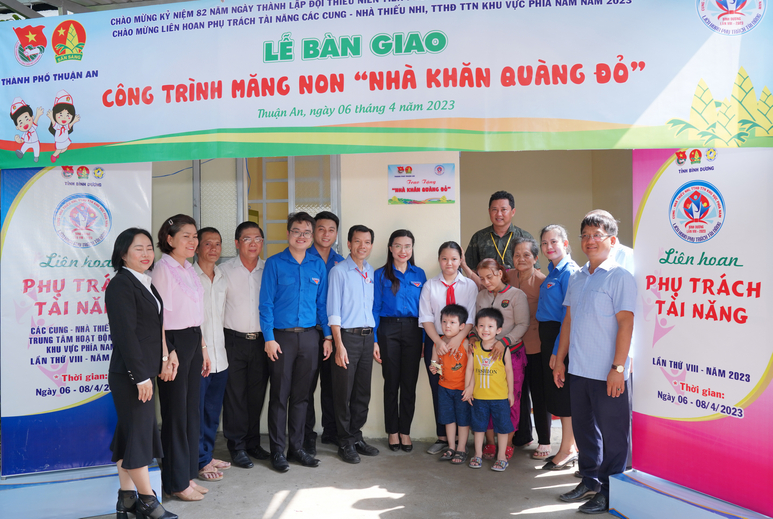 Đồng chí Nguyễn Phạm Duy Trang - Bí thư T.Ư Đoàn, Chủ tịch Hội đồng Đội T.Ư cùng các đại biểu tham dự Lễ bàn giao Ngôi nhà Khăn Quàng Đỏ tại thành phố Thuận An