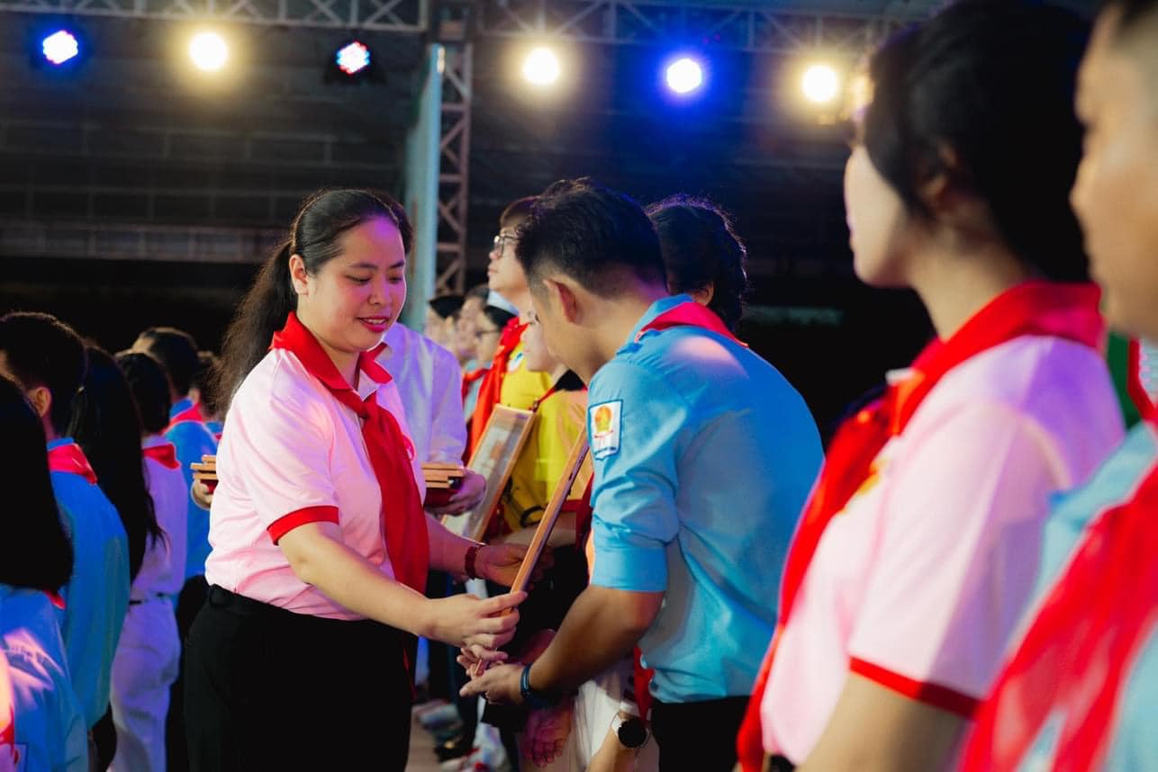 Phó Bí thư Thành đoàn, Chủ tịch Hội đồng Đội TP.HCM Trịnh Thị Hiền Trân trao bằng khen cho các đơn vị đạt giải tiết mục biểu diễn xuất sắc