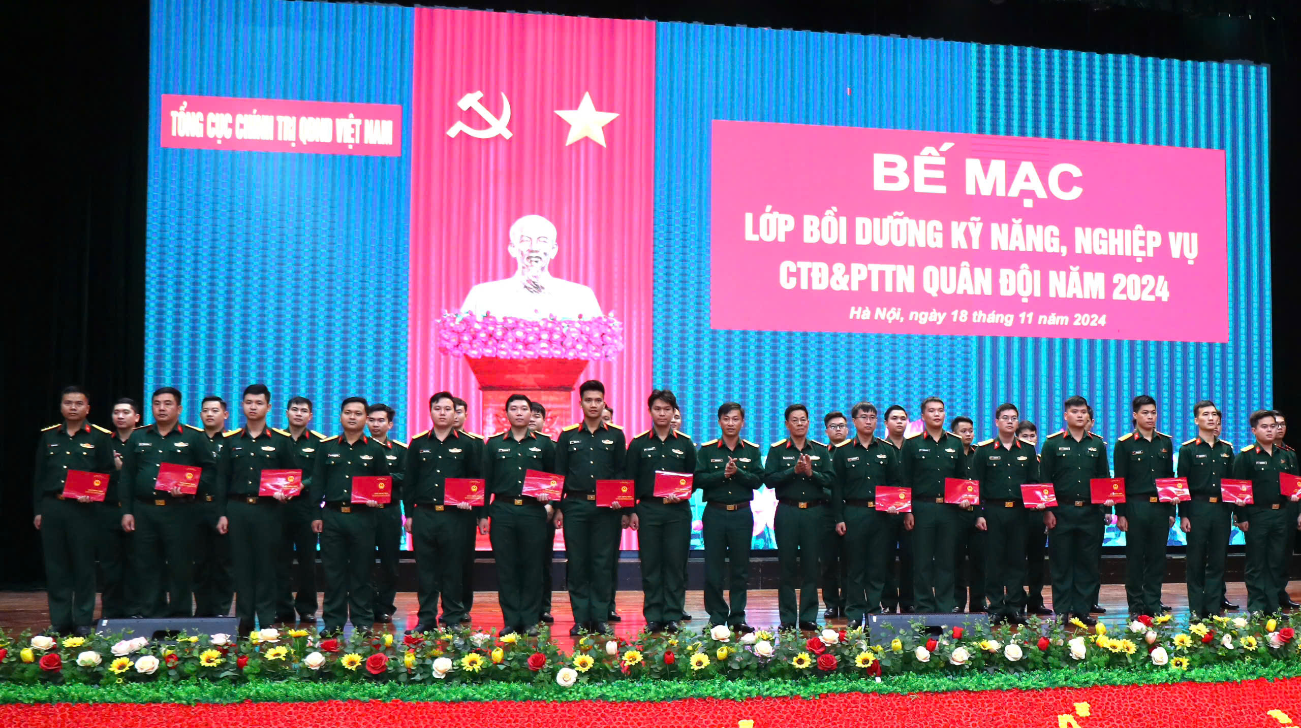 Trên cơ sở đánh giá kết quả của từng học viên, Ban tổ chức đề xuất với Hiệu trưởng Trường Sĩ quan Chính trị ra Quyết định công nhận học viên hoàn thành Chương trình bồi dưỡng kỹ năng, nghiệp vụ công tác đoàn và phong trào thanh niên Quân đội năm 2024 bảo đảm chặt chẽ, nghiêm túc, đúng quy định. Kết quả, 100% học viên đạt khá, giỏi.