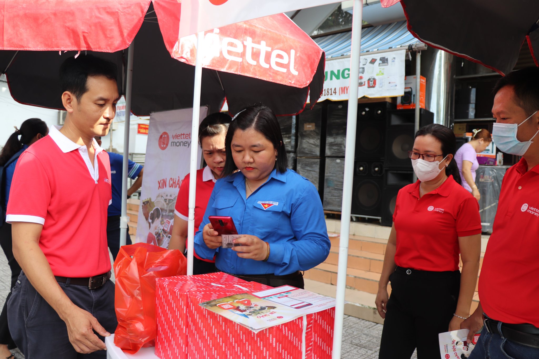 Tại chương trình, có 9 đơn vị tài chính, viễn thông có trụ sở, chi nhánh tại Bến Tre tham gia và có gian hàng trưng bày, bao gồm: Ngân hàng Nông nghiệp và Phát triển nông thôn (Agribank); Ngân hàng TMCP Công thương Việt Nam (VietinBank); Ngân hàng Nam Á (Nam A Bank); Ngân hàng Quân đội (MB); Ngân hàng Bưu điện Liên Việt (LienViet Post Bank); Ngân hàng Đầu tư và Phát triển (BIDV) chi nhánh Bến Tre và chi nhánh Đồng Khởi; VNPT Bến Tre với ứng dụng VNPT Money và Viettel Bến Tre với ứng dụng Viettel Money. Các đơn vị tập trung giới thiệu các ứng dụng thanh toán không dùng tiền mặt, hướng dẫn cài đặt và kích hoạt tài khoản cùng với quà tặng và các nội dung ưu đãi khác.