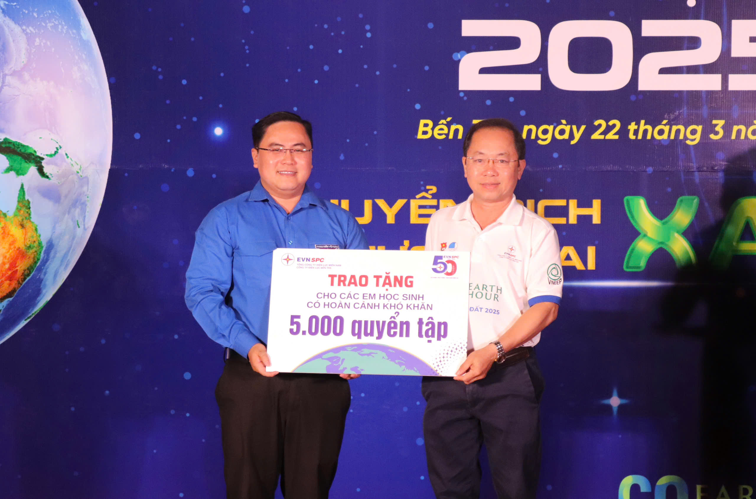 Trên tinh thần đó, hoạt động Giờ Trái đất năm nay được Ban Thường vụ Tỉnh đoàn, Ban Thư ký Ủy ban Hội LHTN Việt Nam tỉnh phối hợp Ban Giám đốc Công ty Điện lực Bến Tre tổ chức nằm trong chuỗi các hoạt động hưởng ứng Tháng Thanh niên năm 2025, đồng thời, đúng với dịp cả nước hưởng ứng Giờ Trái đất vào lúc 20 giờ 30 phút đến 21 giờ 30 phút ngày 22/03/2025.