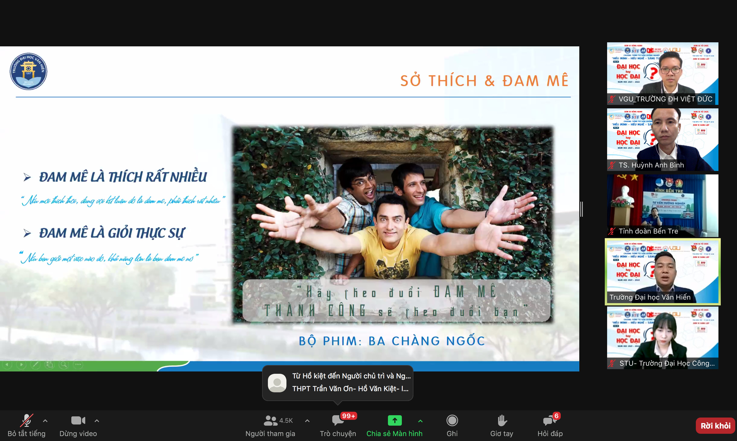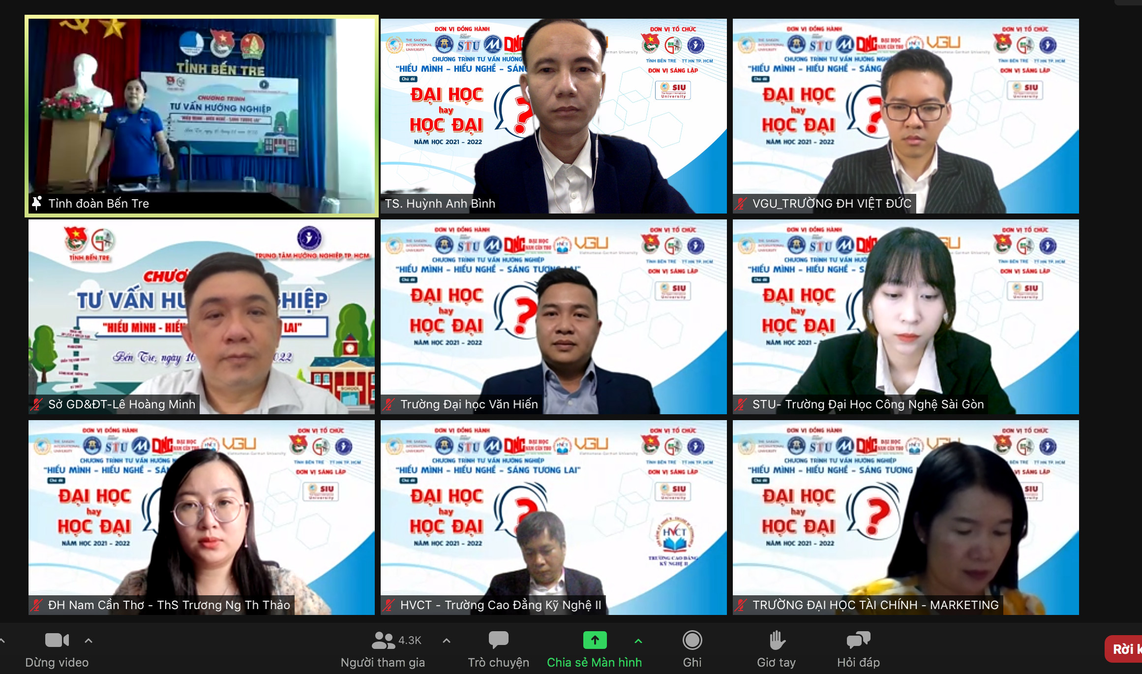 Tham gia chương trình các bạn học sinh được các chuyên gia tư vấn về: các sai lầm trong chọn nghề của ThS Cao Quảng Tư - Giám đốc tuyển sinh Trường Đại học Quốc tế Sài Gòn; chọn đúng ngành cần các yếu tố nào? của ThS Nguyễn Hoàng Quân - Trưởng bộ phận Trung tâm Truyền thông & Tuyển sinh Trường Đại học Văn Hiến; dự báo các ngành khát nguồn nhân lực, các lời khuyên chọn nghề của ThS Nguyễn Ngọc Anh Thư – Phòng Truyền thông & Tuyển sinh Trường Đại học Công nghệ Sài Gòn; tầm quan trọng của việc chọn nghề và Học nghề như thế nào để có tương lai mở rộng? của ThS Trương Nguyễn Thanh Thảo - Trưởng phòng Tư vấn tuyển sinh & Truyền thông Trường Đại học Nam Cần Thơ; chọn nghề, học nghề như thế nào để trở thành Công dân toàn cầu? của ThS Huỳnh Anh Hậu - Phòng Truyền Thông – Tuyển Sinh Trường Đại học Việt Đức; công cụ chọn nghề của ThS Vương Hồng Quân – Giám đốc Trung tâm Hướng nghiệp - tuyển sinh Trường Cao đẳng Kỹ nghệ II; giao lưu trả lời các câu hỏi của học sinh của ThS Nguyễn Kim Phụng – PGĐ Trung tâm tuyển sinh & quan hệ doanh nghiệp Trường Đại học Tài chính – Marketing.