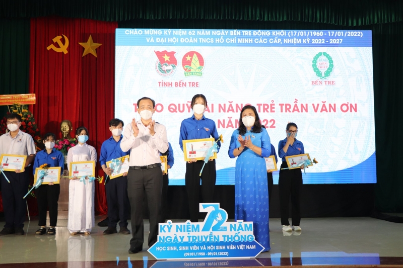 Tại chương trình, Ban Thường vụ Tỉnh đoàn đã tuyên dương 14 sinh viên xuất sắc đạt danh hiệu “Sinh viên 5 tốt” cấp tỉnh và 02 học sinh tiêu biểu đạt danh hiệu “Học sinh 3 rèn luyện” trong hệ trung cấp thuộc các trường Cao đẳng và Trung tâm Giáo dục nghề nghiệp, Giáo dục thường xuyên toàn tỉnh. Trao Quỹ Tài năng trẻ Trần Văn Ơn cho 28 bạn học sinh, sinh viên có thành tích xuất sắc trong học tập, nghiên cứu khoa học, tham gia tích cực hoạt động Đoàn - Hội - Đội với tổng số tiền 140 triệu đồng.