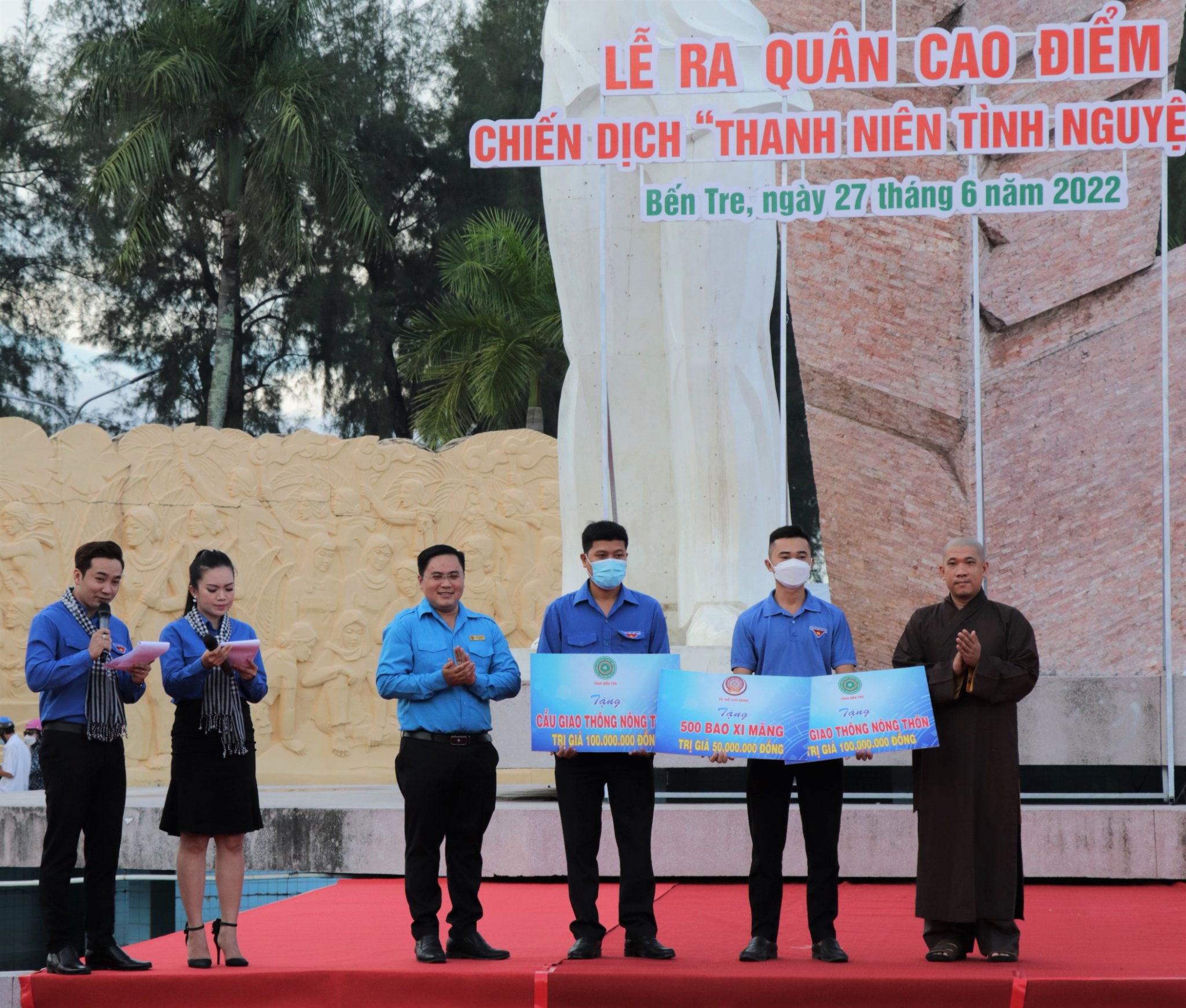 Tại buổi lễ ra quân cao điểm Ủy ban Mặt trận Tổ quốc Việt Nam tỉnh đã hỗ trợ xây dựng 10 căn nhà tình thương trị giá 500.000.000 đồng; Ban Trị sự Giáo hội Phật giáo Việt Nam tỉnh hỗ trợ kinh phí xây dựng 02 cây cầu giao thông nông thôn trị giá 200.000.000 đồng; Câu lạc bộ Hạnh Nguyện Thành phố Hồ Chí Minh tặng 500 bao xi măng; Công ty Điện lực tỉnh Bến Tre tặng 02 công trình thắp sáng tuyến đường; Công ty TNHH ESUHAI hỗ trợ kinh phí xây dựng 03 căn nhà tình thương trị giá 150.000.000 đồng; Tỉnh đoàn Bến Tre vận động kinh phí hỗ trợ kinh phí xây 04 căn nhà tình thương cho các hộ dân có hoàn cảnh khó khăn trị giá 170.000.000 đồng, bê tông hóa tuyến đường giao thông nông thôn trị giá 50.000.000 đồng, 15 thùng rác 03 ngăn phân loại rác để góp phần xây dựng tuyến đường kiểu mẫu “sáng – xanh – sạch – đẹp – tiết kiệm năng lượng” với tổng kính phí hơn 1,5 tỷ đồng. Ngoài ra Ban Giám đốc Trung tâm kinh doanh VNPT Bến Tre và Ban Giám đốc Viettel Bến Tre còn hỗ trợ áo, nón cho Chiến dịch.