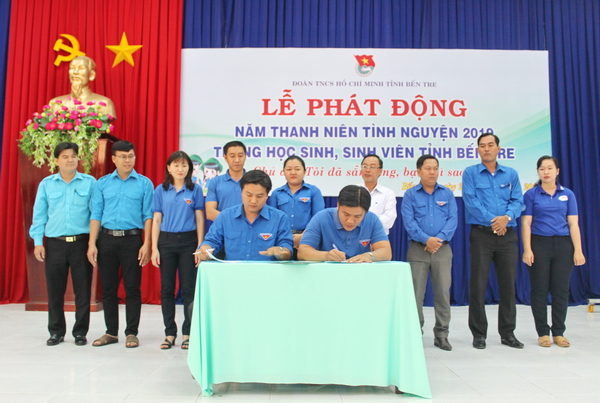 Cũng tại buổi lễ, các đơn vị Huyện, Thành đoàn và 03 đoàn trường học trực thuộc trên địa bàn tỉnh Bến Tre đã tiến hành ký kết thực hiện nhiệm vụ trong Năm thanh niên tình nguyện 2019, để cụ thể hóa các nội dung gắn với học sinh, sinh viên qua đó thể hiện sự quyết tâm của các đơn vị trong việc thực hiện các nhiệm vụ trọng tâm trong Năm thanh niên tình nguyện 2019.