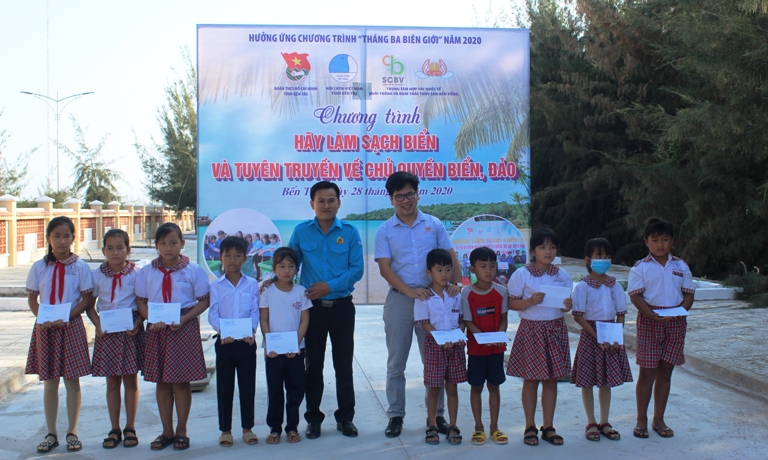 Trong khuôn khổ buổi ra quân, Ban Thường vụ Tỉnh đoàn, Ban Thư ký UBH LHTN Việt Nam tỉnh tổ chức Chương trình “Hãy làm sạch biển, Tuyên truyền về chủ quyền biển, đảo”, hưởng ứng “chương trình Tháng ba biên giới” năm 2020. Trong hoạt động này, Trung tâm Hợp tác Quốc tế nuôi trồng và Khai thác Thủy sản Bền vững – ICAFIS đã tặng 20 suất học bổng (mỗi suất 01 triệu đồng), tặng 05 thùng rác cho Đồn Biên phòng Cổ Chiên và Ban quản lý khu bảo tồn, đồng thời ra quân thu gom rác thải nhựa và tuyên truyền cho các hộ gia đình và khách du lịch không xả rác bừa bãi.