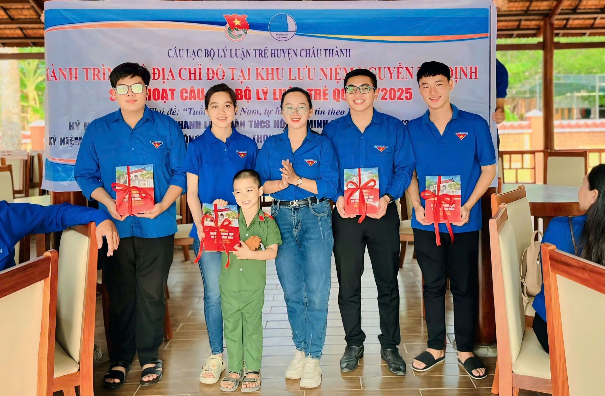 Đồng chí Võ Thị Mỹ Xuyên, Phó Chủ tịch Hội đồng Đội huyện, Phó Chủ nhiệm CLB Lý luận trẻ huyện tặng các phần quà ý nghĩa cho thành viên câu lạc bộ Lý luận trẻ huyện Châu Thành