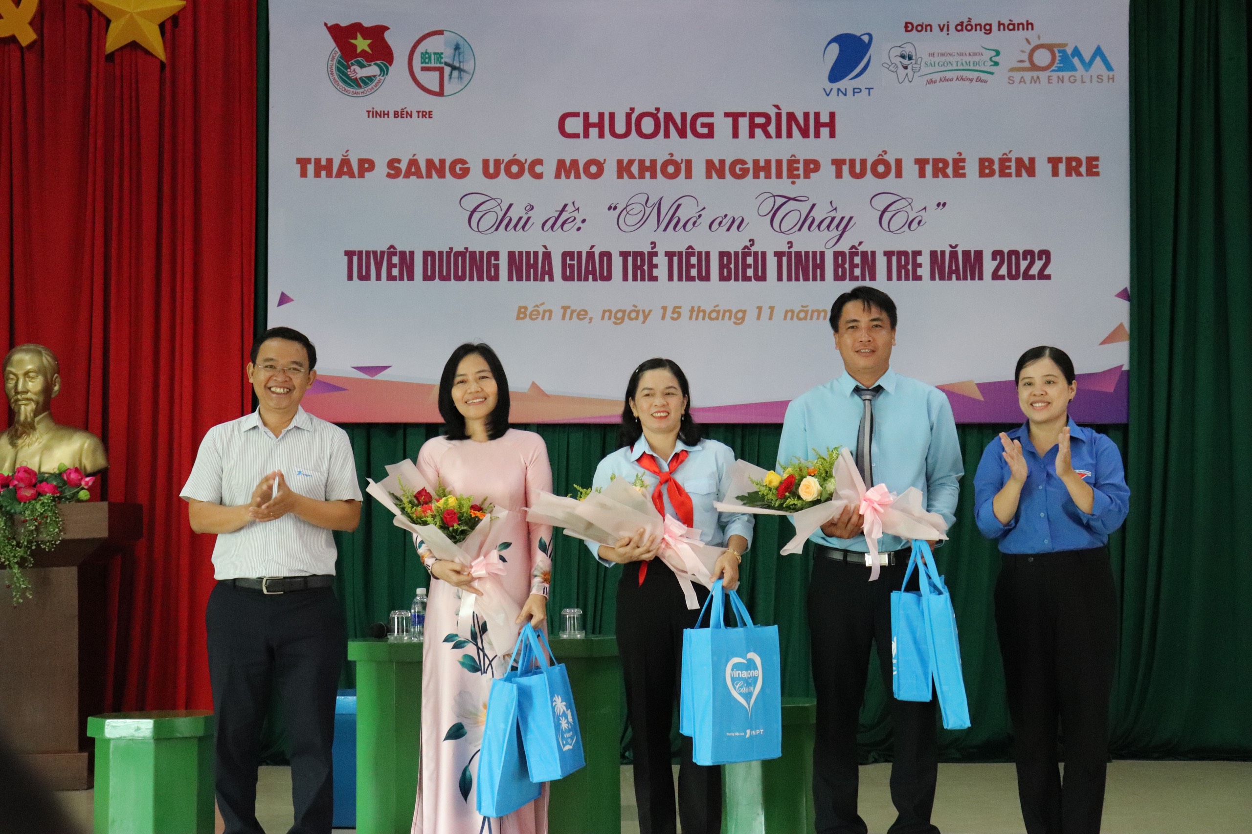 Nhân kỷ niệm kỉ niệm 40 năm ngày Hiến chương nhà giáo Việt Nam (20/11/1982-20/11/2022), Ban Thường vụ Tỉnh đoàn đã tuyên dương và trao tặng danh hiệu “Nhà giáo trẻ tiêu biểu” tỉnh Bến Tre năm 2022 cho 07 thầy cô đạt nhiều thành tích cao trong công tác giảng dạy, nghiên cứu khoa học, sẵn sàng dấn thân cống hiến cho xã hội, sống gương mẫu, là tấm gương sáng về đạo đức và tài năng đối với đồng nghiệp, học sinh, sinh viên tỉnh nhà.