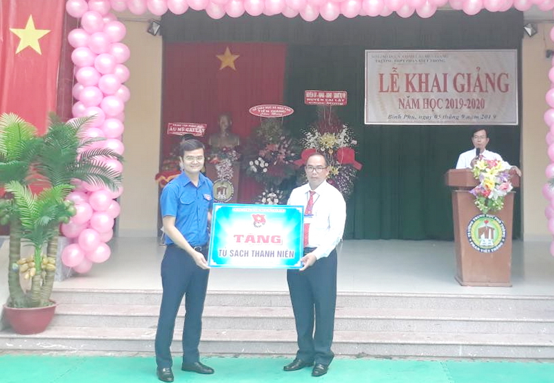 Và trao Tủ sách thanh niên cho Ban Giám hiệu nhà trường |