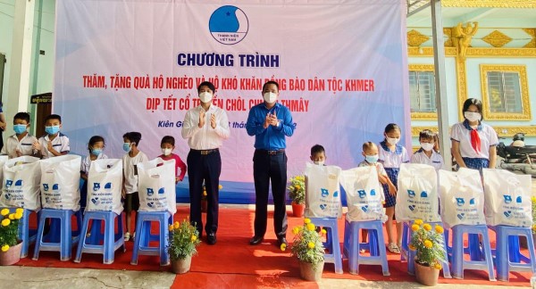 Nhân dịp tết Chôl Chnăm Thmây năm 2022, Trung ương Đoàn, Trung ương Hội LHTN Việt Nam cũng tổ chức trao 100 túi an sinh cho bà con nghèo trên địa bàn xã Ngọc Chúc.