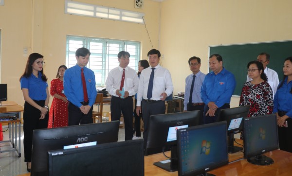 Các đồng chí lãnh đạo tham quan phòng tin học