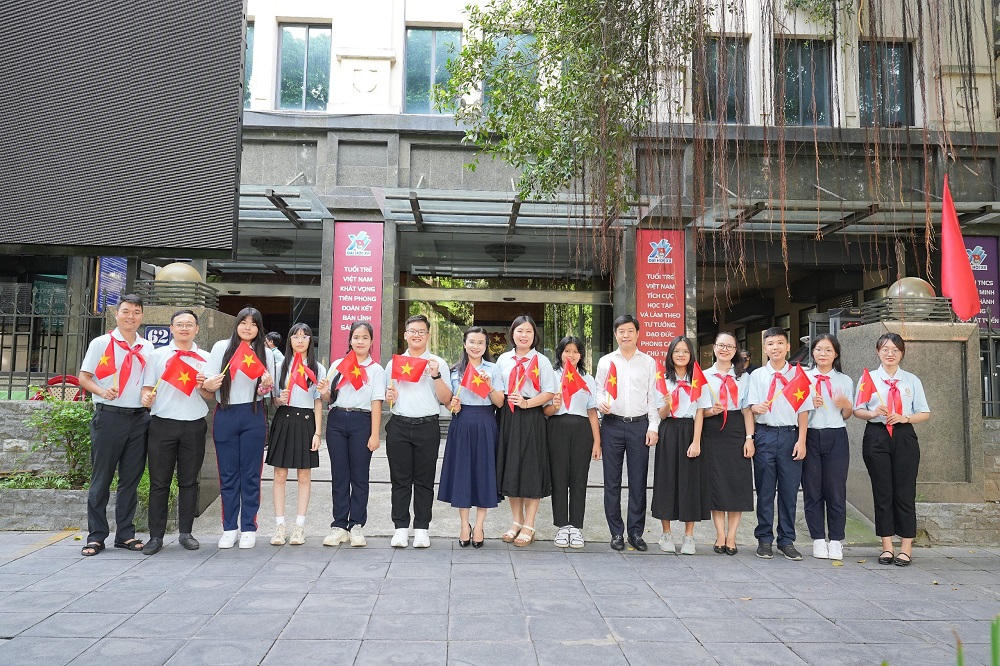 Các đồng chí lãnh đạo chụp hình lưu niệm với đoàn đại biểu Trung tâm Hỗ trợ và Phát triển Thiếu nhi Việt Nam tham gia chương trình giao lưu