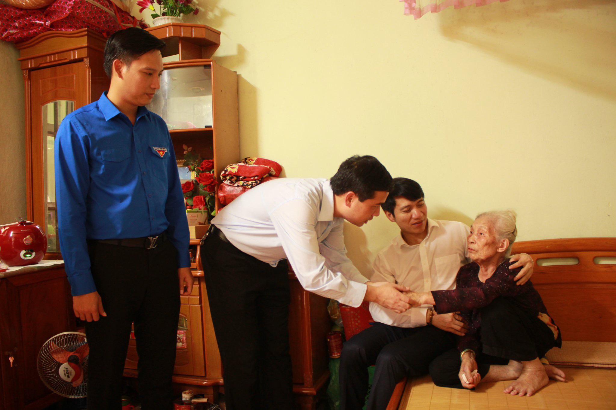 Đồng chí Nguyễn Ngọc Lương - Bí thư Trung ương Đoàn, Chủ tịch Hội LHTN Việt Nam cùng lãnh đạo Tỉnh đoàn Bắc Ninh thăm, tặng quà bà Nguyễn Thị Nhị, sinh năm 1938, vợ Liệt sỹ, Khu phố Xuân Ổ B, phường Võ Cường, thành phố Bắc Ninh.