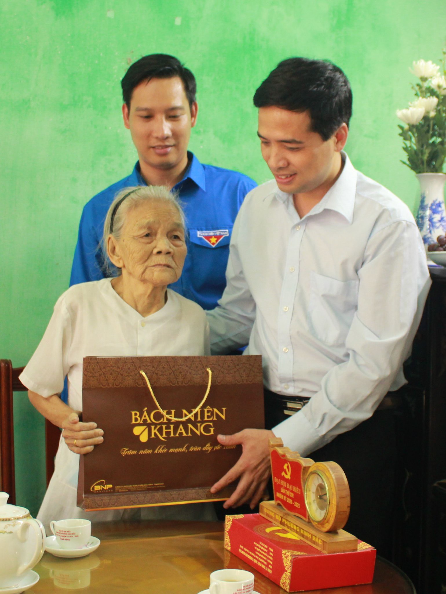 Đồng chí Nguyễn Đức Sâm - Bí thư Tỉnh Đoàn, Chủ tịch Hội LHTN tỉnh và đồng chí Nguyễn Bảo Đại - Phó Bí thư Tỉnh Đoàn thăm, tặng quà Mẹ Việt Nam Anh hùng ở Thành phố Bắc Ninh