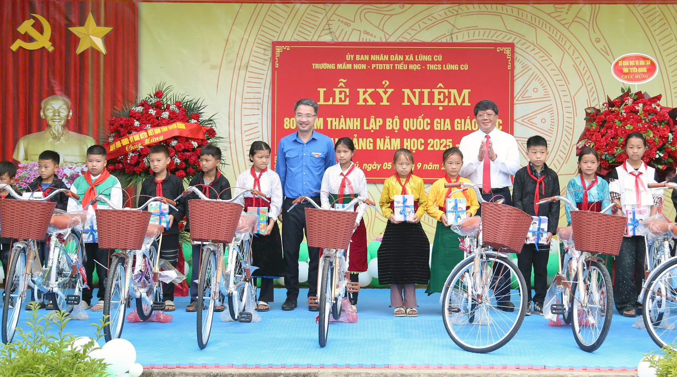Sáng 5/9, anh Nguyễn Tường Lâm, Bí thư T.Ư Đoàn, Chủ tịch T.Ư Hội Liên hiệp Thanh niên Việt Nam cùng đoàn công tác đã dự Lễ khai giảng năm học 2025 - 2026 tại trường PTDTBT Tiểu học Lũng Cú, xã Lũng Cú, tỉnh Tuyên Quang.