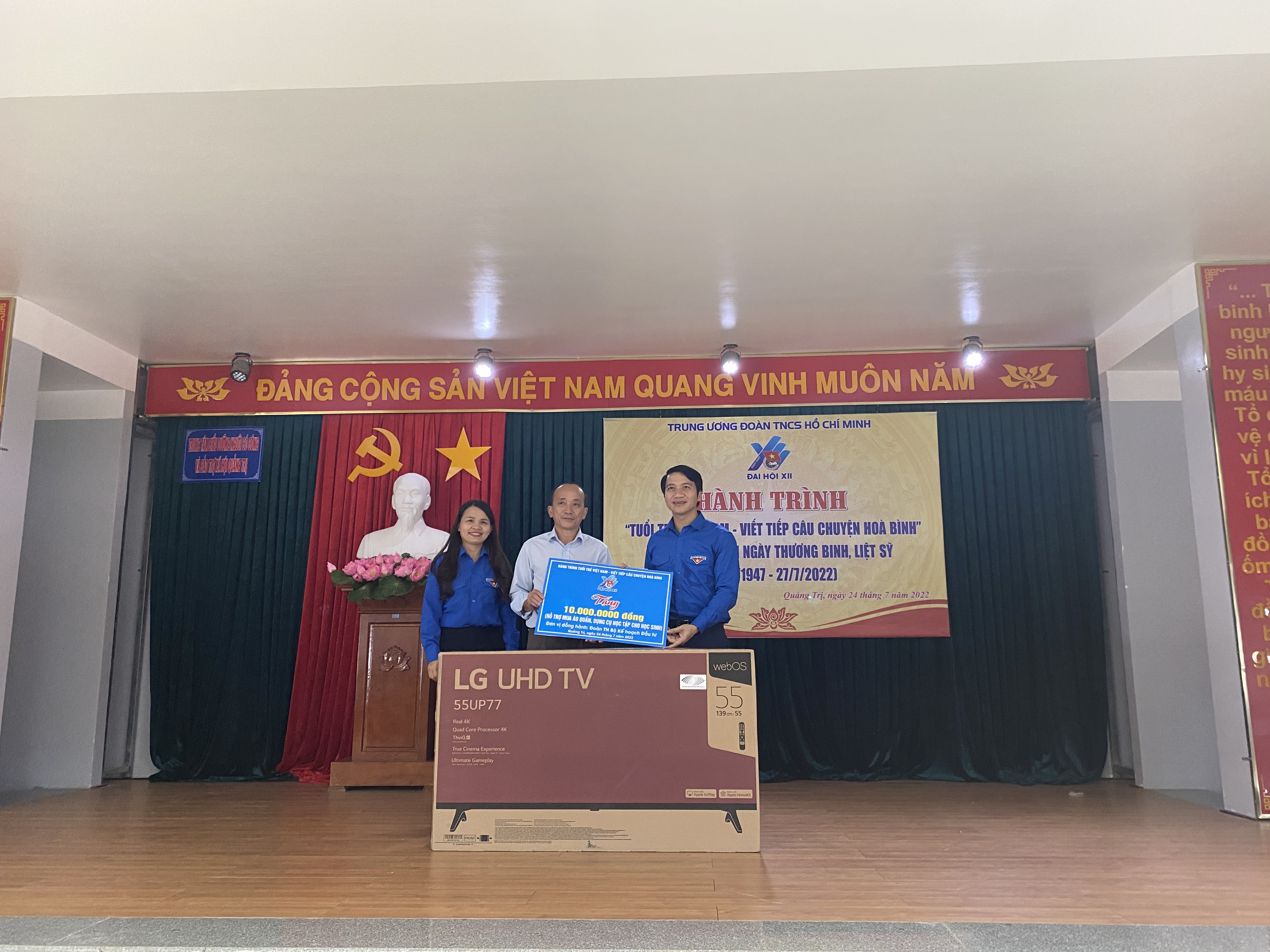 Dịp này, Đoàn công tác đã trao tặng nhiều phần quà ý nghĩa cho những người có công, người già neo đơn và các em thiếu thi đang sinh hoạt tại Trung tâm Điều dưỡng Người có công và bảo trợ Xã hội tỉnh Quảng Trị: 01 chiếc TV 55 inch và 10 triệu đồng (số tiền này sẽ dùng để mua quần áo, sách vở cho các cháu thiếu nhi); 15 chiếc xe đạp cho thanh thiếu nhi mồ côi.