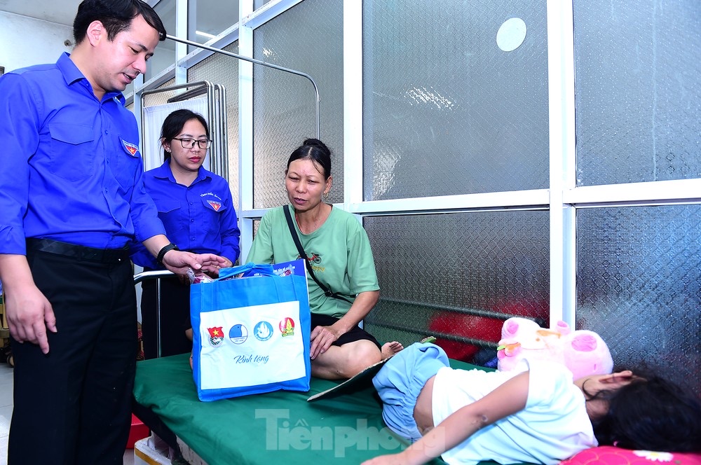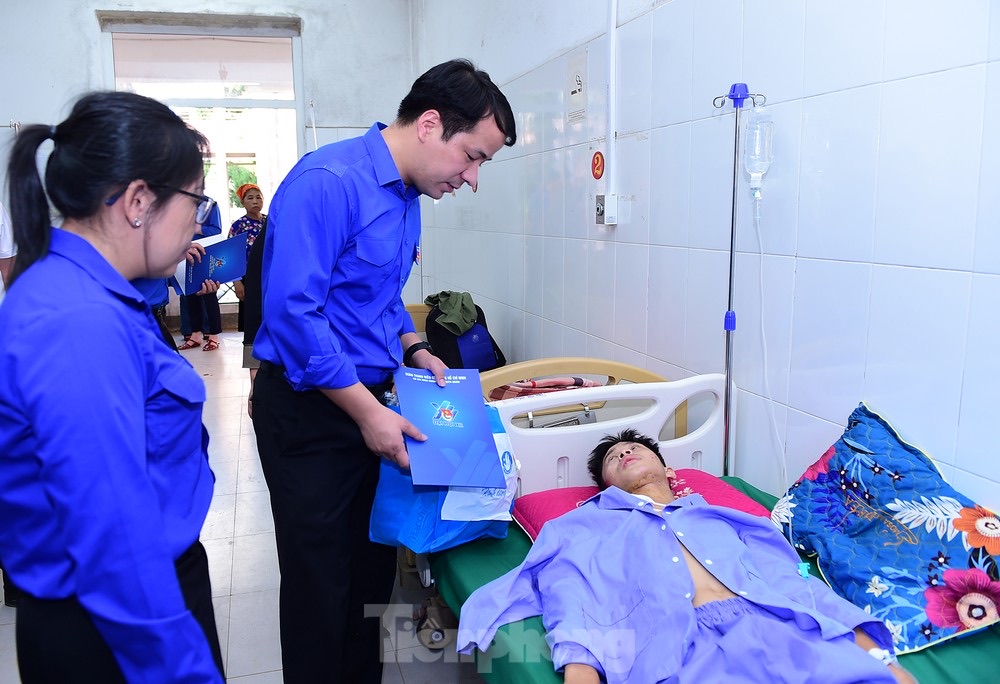 Rời thôn Làng Nủ, đoàn đã đến Bệnh viện Đa khoa huyện Bảo Yên. Trong điều kiện mưa lũ, bệnh viện bị ngập lụt và gặp nhiều khó khăn về trang thiết bị y tế, thuốc men, vật tư. Đây là nơi tiếp nhận, điều trị nhiều nạn nhân của trận mưa lũ lịch sử. Tại đây, đoàn đã thăm hỏi, tặng quà động viên hai học sinh mồ côi cha mẹ trong đợt sạt lở, đang điều trị.