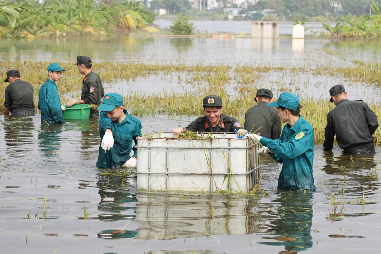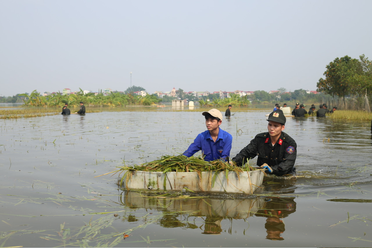 Ngay sau khi cơn bão số 3 đi qua, các đội hình thanh niên tình nguyện huyện Sóc Sơn đã tích cực tham gia hỗ trợ người dân vớt lúa bị ngập sâu sau mưa bão.