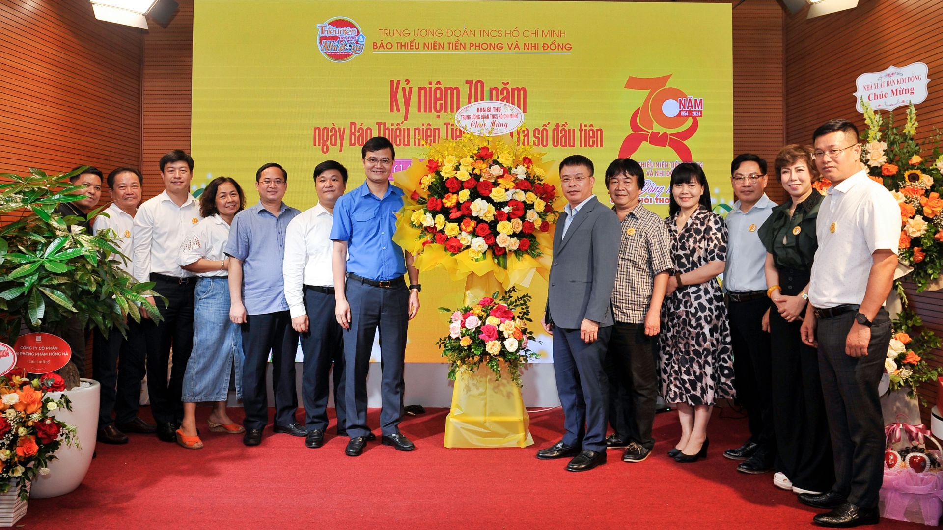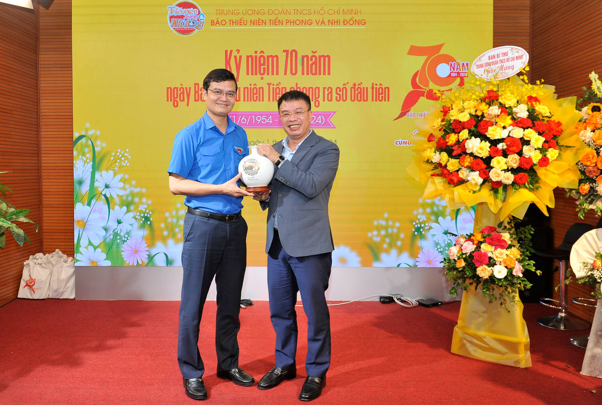 Bí thư thứ nhất T.Ư Đoàn Bùi Quang Huy tặng hoa chúc mừng Báo Đội dịp Kỷ niệm 70 năm ngày ra ra số báo đầu tiên