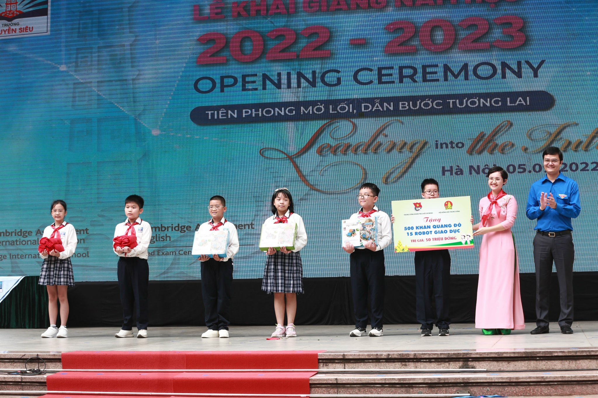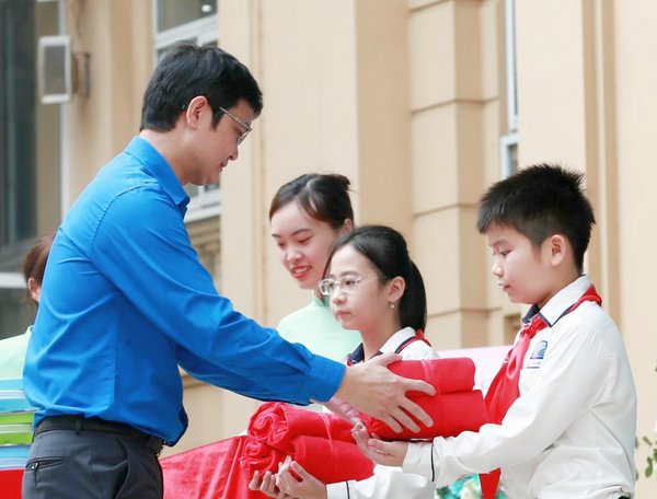 Tại lễ khai giảng, Bí thư thứ nhất T.Ư Đoàn Bùi Quang Huy đã trao tặng trường Nguyễn Siêu 15 Robot giáo dục và 500 khăn quàng đỏ.
