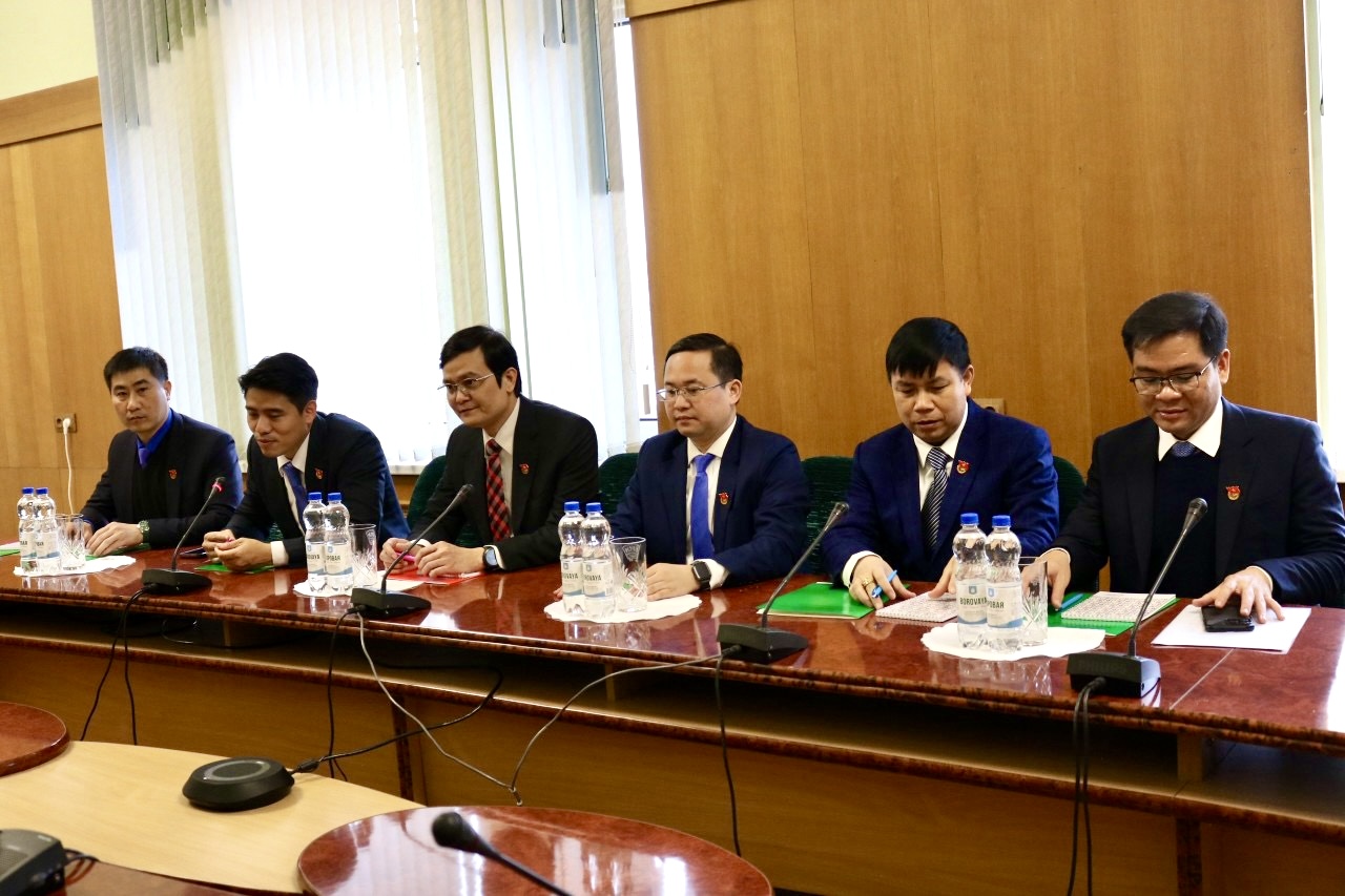 Đoàn cũng đã thăm, làm việc với Đại sứ quán Việt Nam tại Belarus và Chi đoàn Sinh viên Việt Nam tại Belarus. Tại đây, đại diện Chi đoàn Sinh viên Việt Nam đã chia sẻ tình hình lưu học sinh, đoàn viên, thanh niên ở Belarus và đề xuất những vấn đề cần được hỗ trợ.