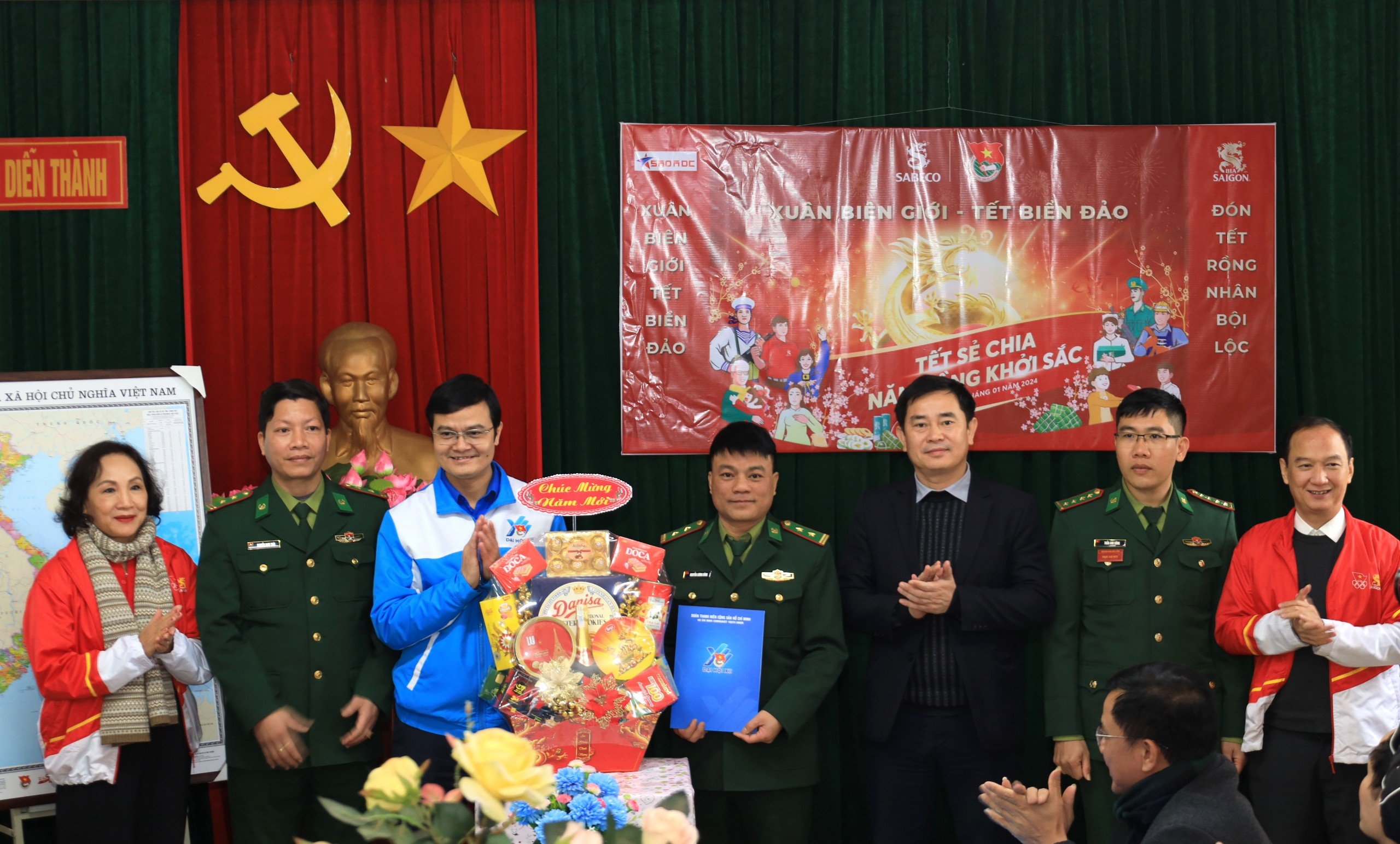 Cũng trong khuôn khổ chương trình, đoàn công tác cũng tới thăm, chúc Tết và trao quà cho lực lượng biên phòng tại đồn biên phòng xã Diễn Thành, huyện Diễn Châu, tỉnh Nghệ An.