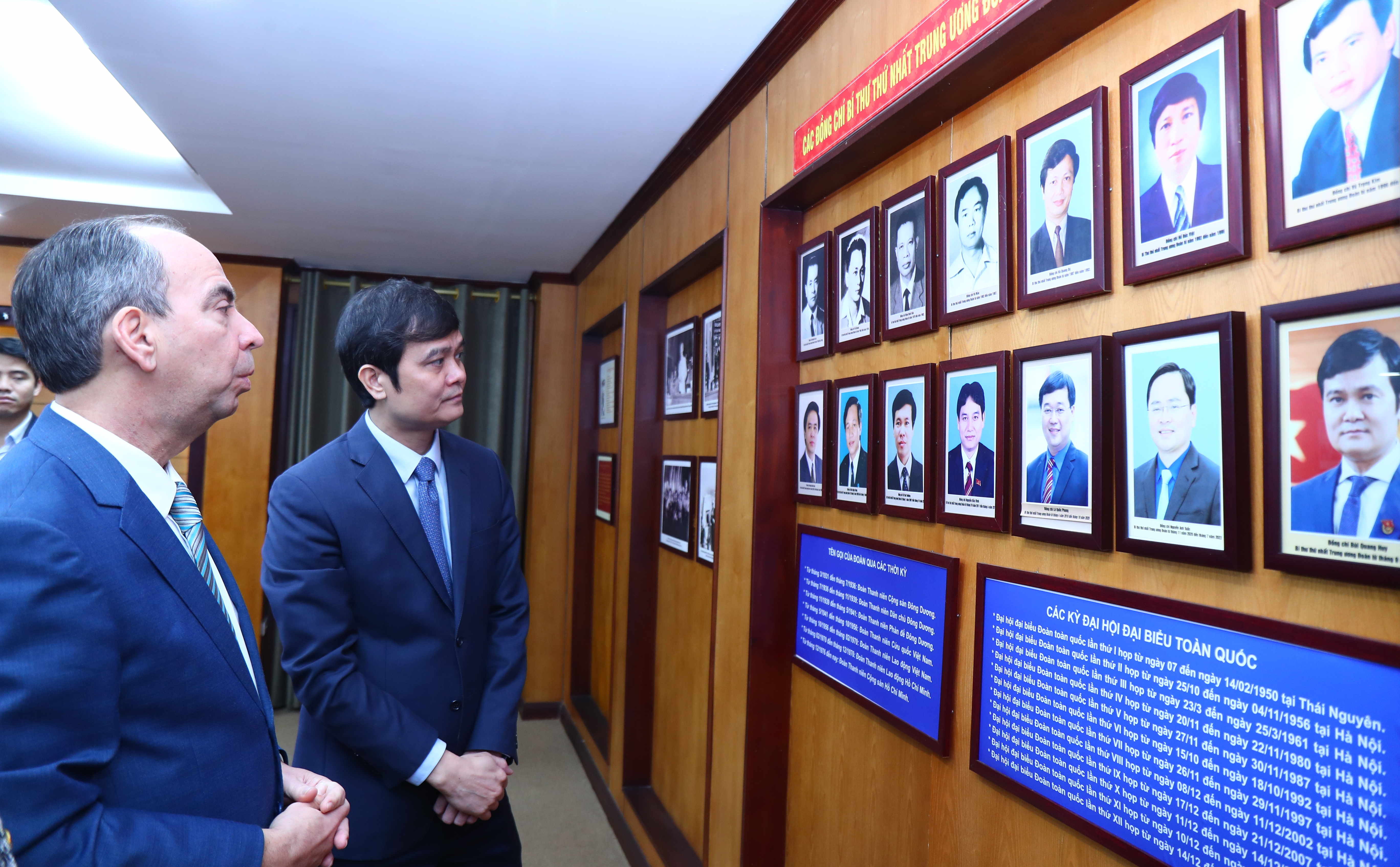 Ngài Rogelio Polanco Fuentes, tân Đại sứ Cuba tại Việt Nam cùng đoàn đại biểu tham quan phòng truyền thống Đoàn TNCS Hồ Chí Minh tại trụ sở cơ quan Trung ương Đoàn