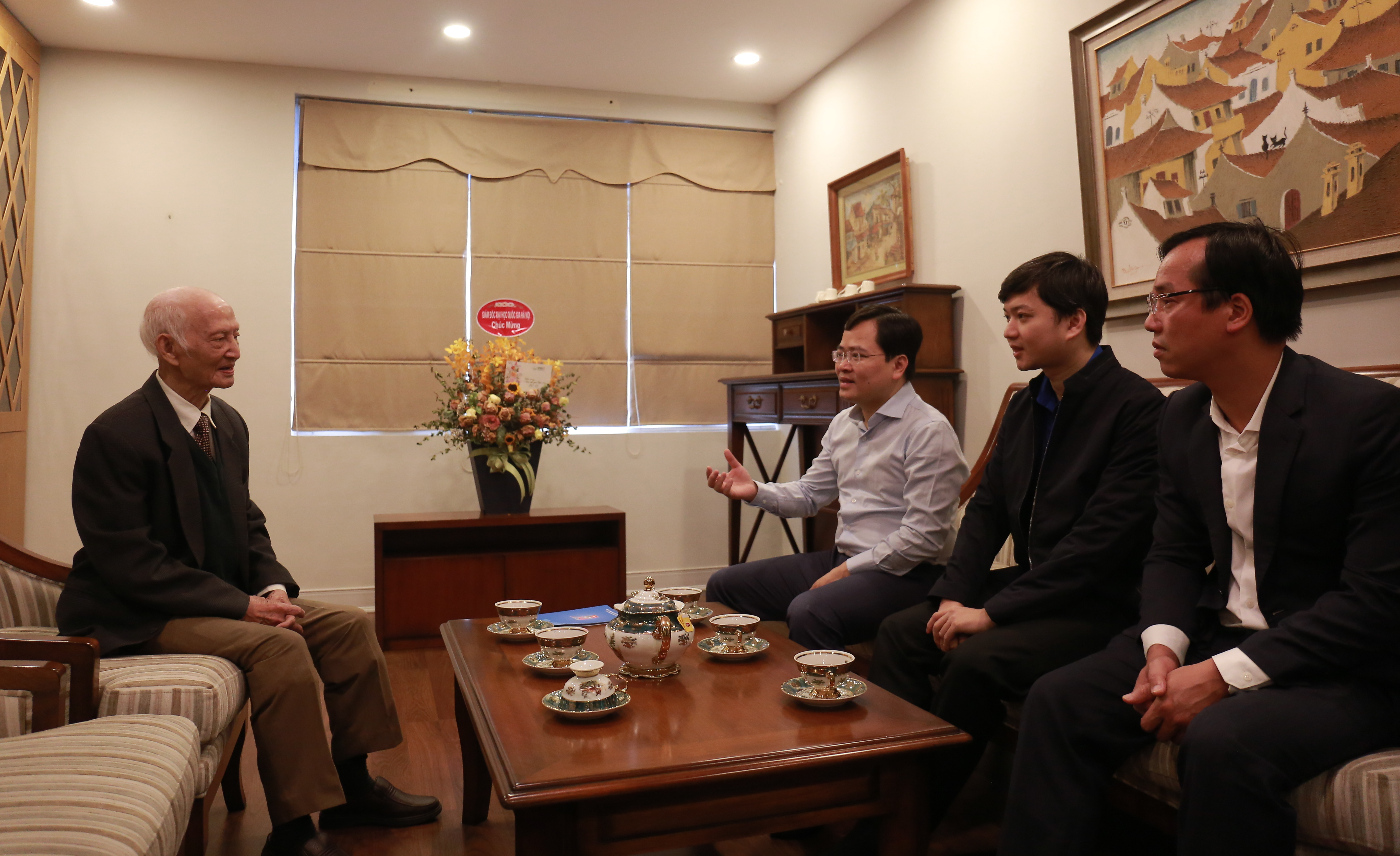 Trong lần kỷ niệm 50 năm sinh viên tốt nghiệp khóa 8 Trường ĐH Tổng hợp, thầy được mời đến dự. Kết thúc buổi gặp gỡ, thầy đã tặng học trò cũ của mình - Tổng Bí thư Nguyễn Phú Trọng - đôi câu đối với mong muốn học trò của mình sẽ vững vàng hơn với một trách nhiệm nặng nề trong việc xây dựng Đảng: “Trọng chính, trọng liêm, hưng đảng tiết” (muốn xây dựng Đảng phải làm cho khí tiết của người đảng viên cao lên)/ “Dương tài, dương trí, kết dân tâm” (Biểu dương người tài, biểu dương tri thức, kết lòng người lại). Thầy kể lại rằng, Tổng Bí thư Nguyễn Phú Trọng cảm ơn thầy và nói rằng: Vậy là hôm nay, thầy và các bạn trao cho em trách nhiệm nặng nề đây./.