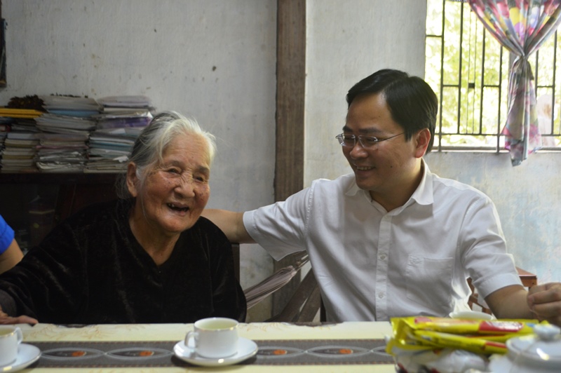 Đồng chí Nguyễn Anh Tuấn đến thăm hỏi động viên sức khỏe cụ Nguyễn Văn Vịnh, thương binh 91%