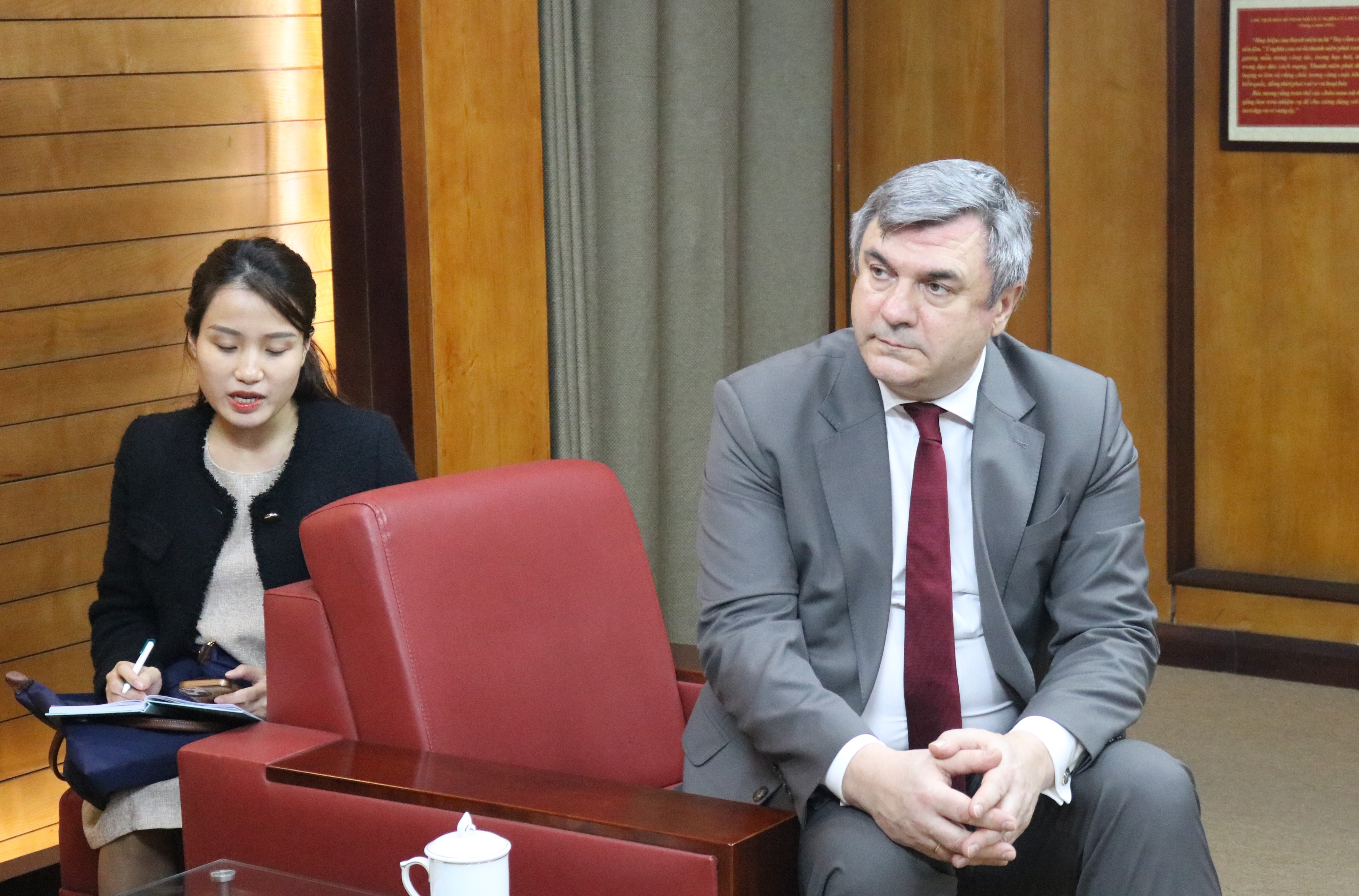Đồng chí Bùi Quang Huy, Ủy viên dự khuyết BCH Trung ương Đảng, Bí thư thứ nhất Trung ương Đoàn, Chủ nhiệm Ủy ban Quốc gia về thanh niên Việt Nam tiếp xã giao ngài Kalganov Vyacheslav Gennadievich, Phó Chủ tịch Ủy ban Đối Ngoại thành phố Saint Petersburg