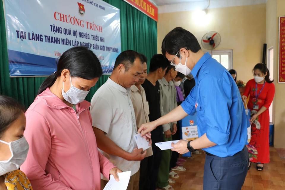 Đồng chí Bùi Quang Huy tặng quà hộ nghèo, thiếu nhi tại Làng Thanh niên lập nghiệp biên giới Thuỵ Hùng