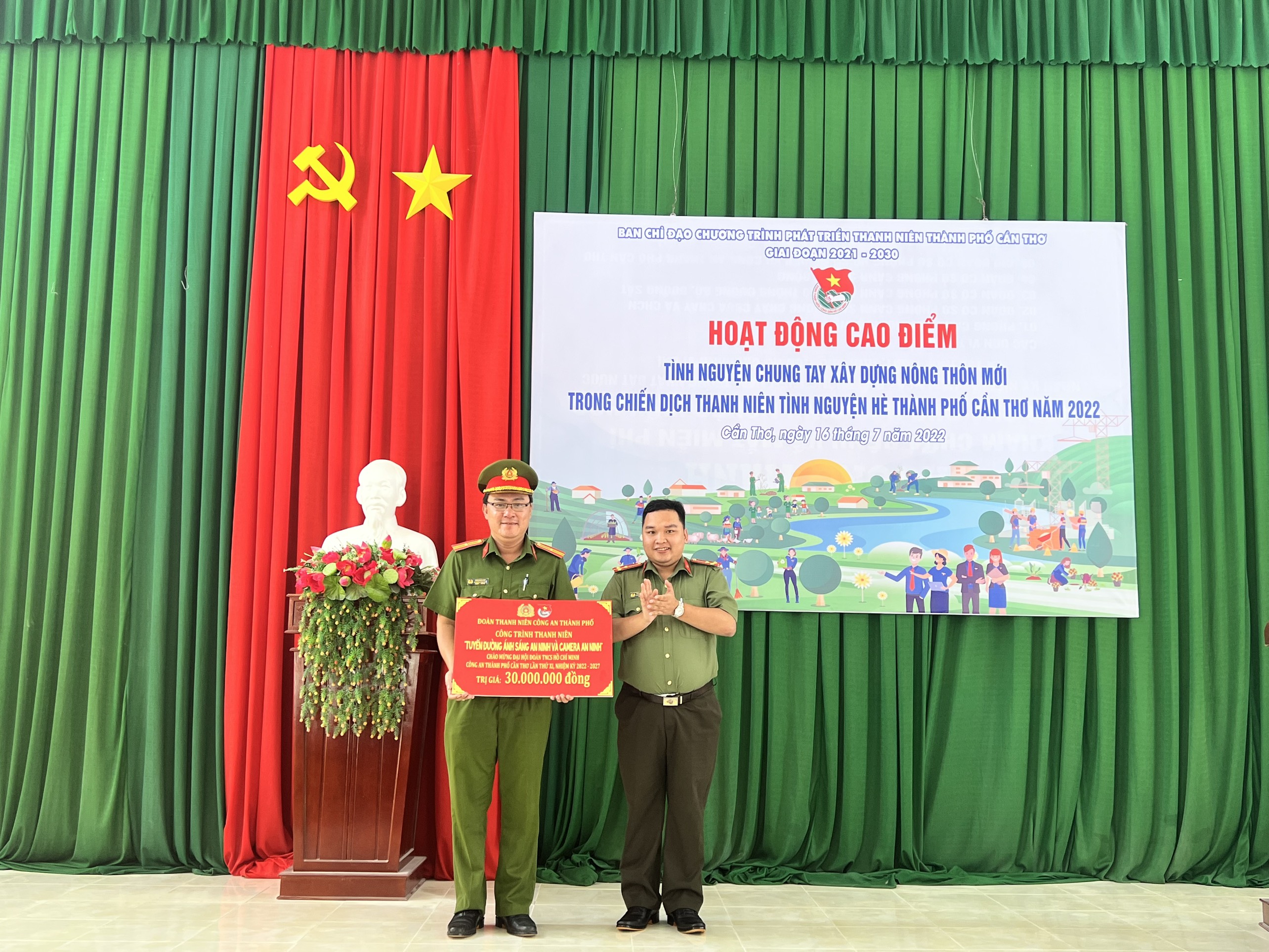 Dịp này, Trung ương Đoàn hỗ trợ 20 triệu đồng cho Đội hình “Trí thức trẻ chuyển giao tiến bộ kỹ thuật cho thanh niên và người dân” thành phố Cần Thơ và trao tặng công trình thanh niên “Thắp sáng đường quê” với tổng giá trị 125 triệu đồng. Đoàn Thanh niên Công an thành phố Cần Thơ trao tặng xã Tân Thạnh công trình thanh niên “Tuyến đường ánh sáng an ninh và Camera an ninh” với tổng giá trị 30 triệu đồng.