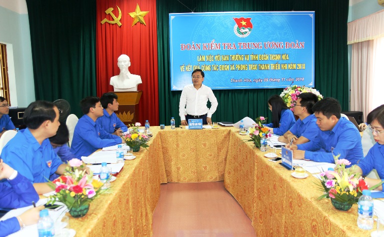 Trong buổi sáng cùng ngày, đồng chí Nguyễn Anh Tuấn - Bí thư Thường trực Trung ương Đoàn cùng đoàn công tác của Trung ương Đoàn đã làm việc với Ban Thường vụ Tỉnh đoàn, kiểm tra công tác Đoàn và phong trào thanh thiếu nhi năm 2018 của tỉnh Thanh Hóa với các nội dung: kết quả thực hiện Chương trình công tác Đoàn và phong trào thanh thiếu nhi năm 2018; Kết quả triển khai thực hiện các Kết luận của Hội nghị Ban Chấp hành, Ban Thường vụ Trung ương Đoàn năm 2018 (Kết luận số 02 – KL/TWĐTN-CNĐT ngày 02/7/2018 của Ban Thường vụ Trung ương Đoàn khóa XI về “Các giải pháp thúc đẩy hoạt động sáng tạo thanh thiếu nhi”; Kết luận số 75 – KL/TWĐTN-CTTN ngày 14/9/2018 của Ban Thường vụ Trung ương Đoàn khóa XI về “Nâng cao vai trò của Đoàn trong bảo vệ, chăm sóc, giáo dục thiếu niên, nhi đồng giai đoạn 2018 – 2022”).