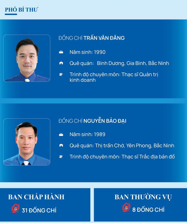 Đồng chí Nguyễn Đức Sâm (SN 1983) quê quán ở xã Quỳnh Phú, huyện Gia Bình, Bắc Ninh. Đồng chí Sâm có trình độ chuyên môn là thạc sỹ luật, trình độ lý luận cao cấp. Đồng chí Trần Văn Đăng (SN 1990) và đồng chí Nguyễn Bảo Đại (1989) làm Phó Bí thư Tỉnh Đoàn Bắc Ninh.