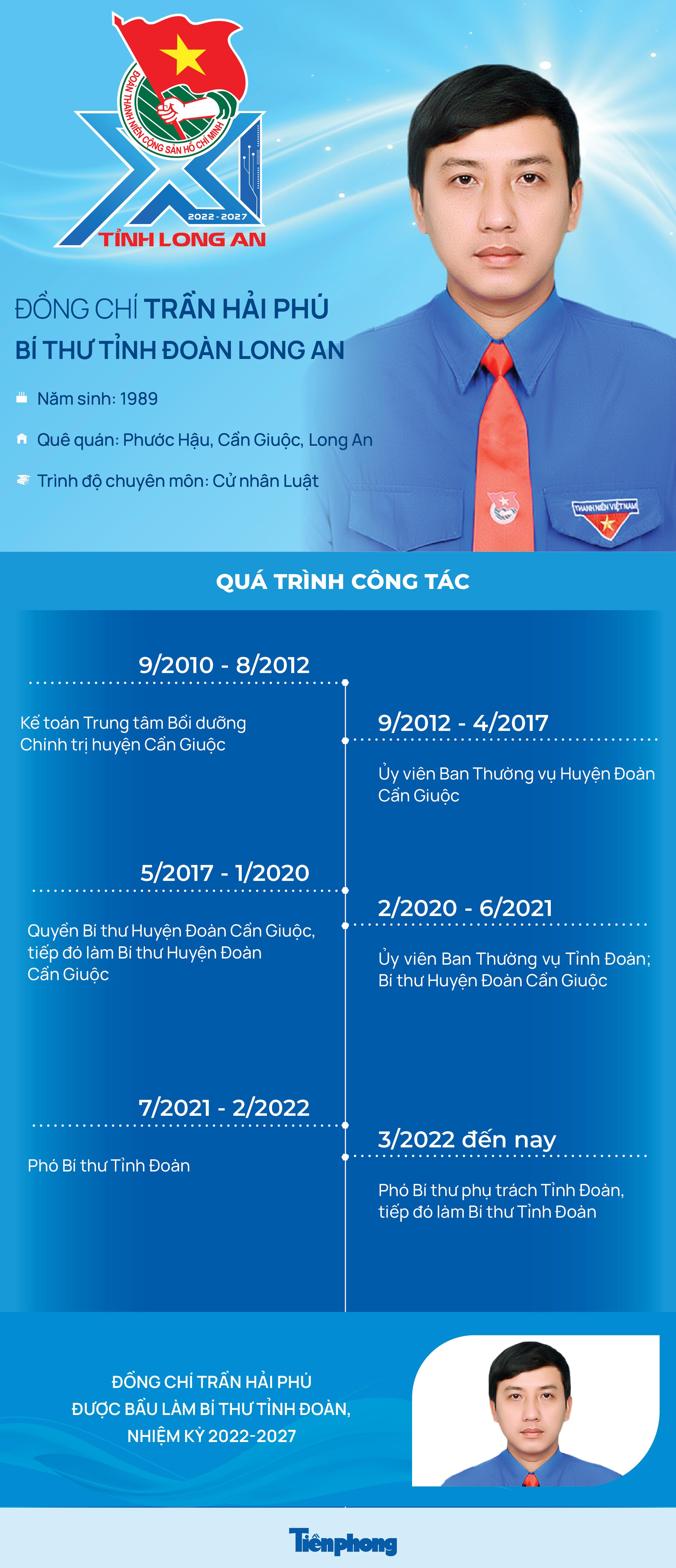 Đại hội đại biểu Đoàn TNCS Hồ Chí Minh tỉnh Long An lần thứ XI, nhiệm kỳ 2022-2027 bầu Ban Chấp hành Tỉnh Đoàn khóa XI gồm 40 người. Đồng chí Trần Hải Phú tái đắc cử Bí thư Tỉnh đoàn Long An.