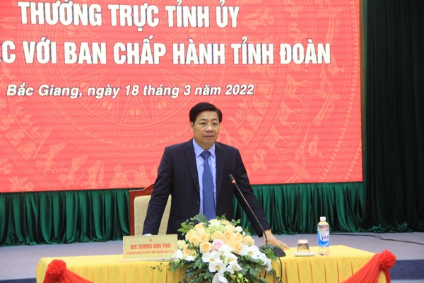 Tại buổi làm việc, đồng chí Bí thư Tỉnh ủy Bắc Giang đã trực tiếp đối thoại, lắng nghe tâm tư, nguyện vọng, đề xuất kiến nghị, giải đáp những thắc mắc, tháo gỡ khó khăn cho thanh niên và tổ chức đoàn các cấp trong tỉnh; trao đổi mục tiên, chiến lược phát triển của tỉnh trong thời gian tới và thông tin, gợi mở, định hướng những vấn đề cán bộ đoàn, đoàn viên, thanh niên quan tâm.