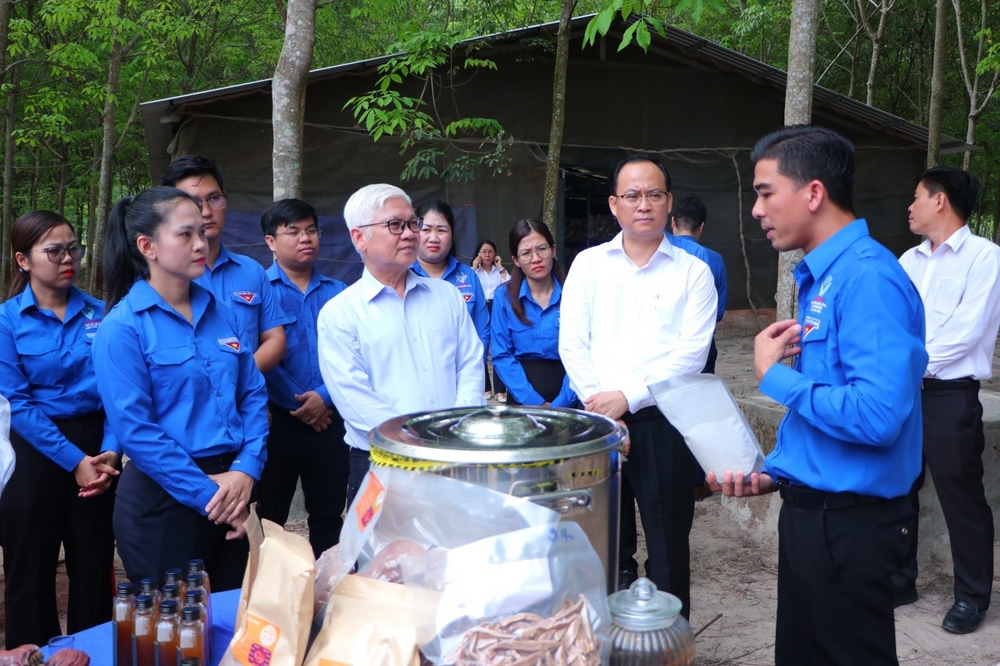 Cùng đi với đoàn có đồng chí Võ Văn Minh - Phó Bí thư Tỉnh ủy, Chủ tịch Ủy ban nhân dân tỉnh Bình Dương; đồng chí Trần Thị Diễm Trinh - Bí thư Tỉnh đoàn; cùng đại diện các sở, ban, ngành, đoàn thể tỉnh và các đồng chí Lãnh đạo huyện Phú Giáo.