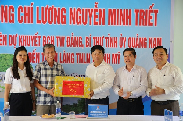 Bí thư Tỉnh ủy Lương Nguyễn Minh Triết tặng quà động viên Ban Quản lý dự án Làng TNLN Thạnh Mỹ