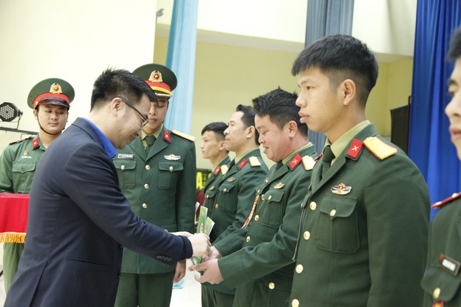 Bí thư Trung ương Đoàn, Phó Chủ nhiệm Thường trực Ủy ban Quốc gia về Thanh niên Việt Nam Nguyễn Tường Lâm trao quà tặng thanh niên Trung đoàn BB 101