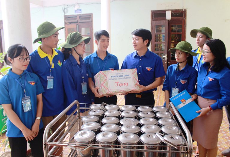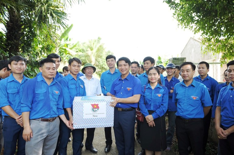 Bí thư Trung ương Đoàn Nguyễn Ngọc Lương tặng quà đội tình nguyện “Hoa phượng đỏ” tại thôn Bái Đa 2 xã Phượng Nghi
