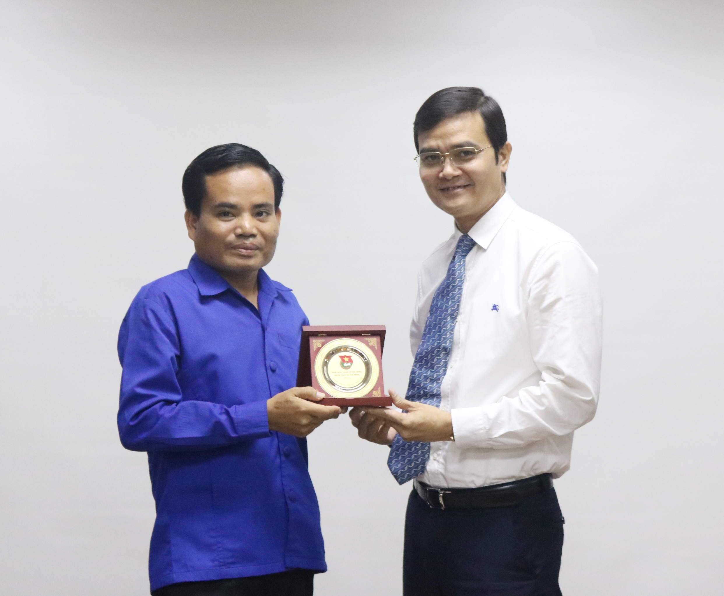 Bí thư T.Ư Đoàn Bùi Quang Huy tặng lưu niệm cho đoàn đại biểu thanh niên Lào tham gia Lớp bồi dưỡng về công tác thanh niên khóa 25 tại Việt Nam