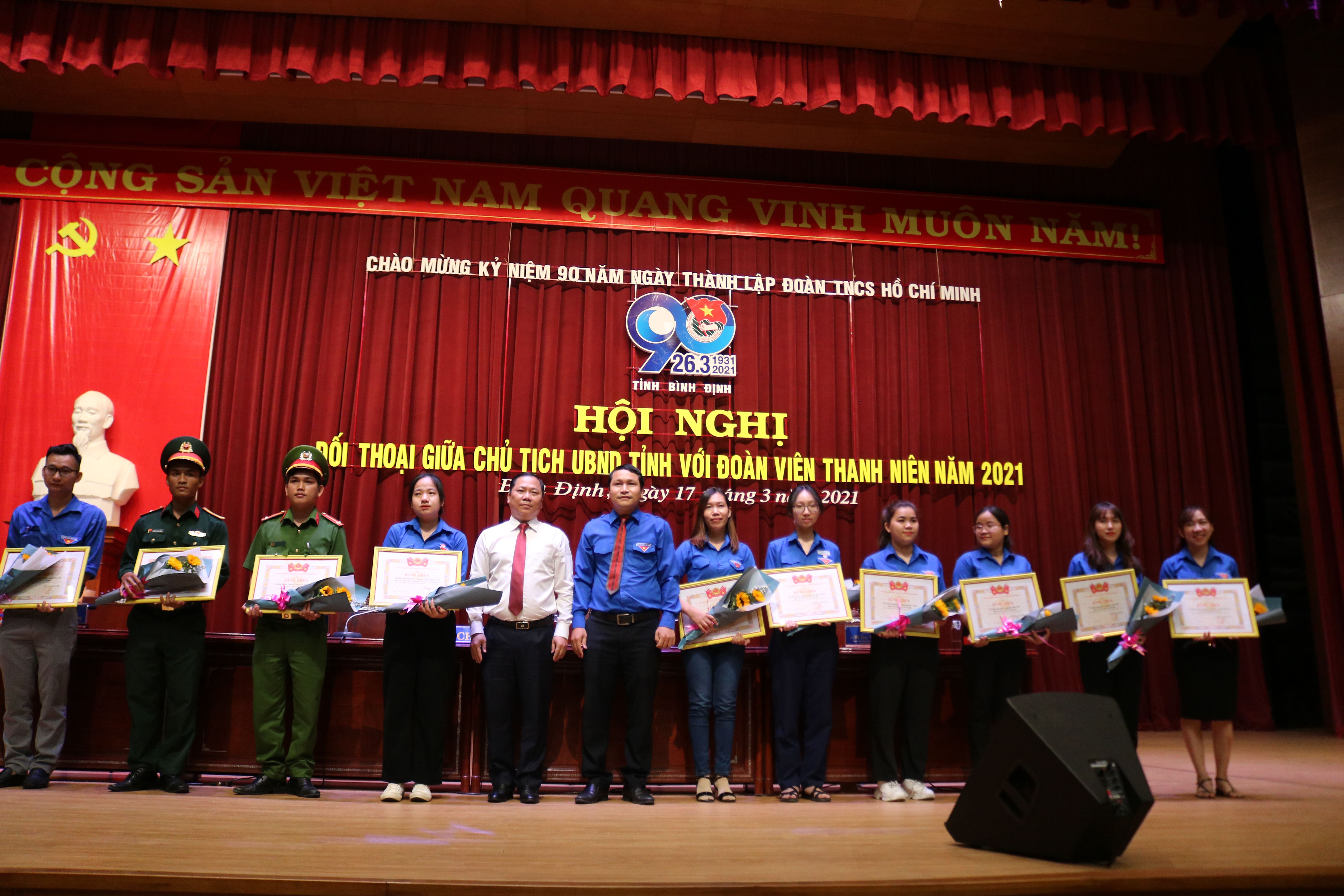 Các đồng chí lãnh đạo trao giải Chi đoàn mạnh 2021