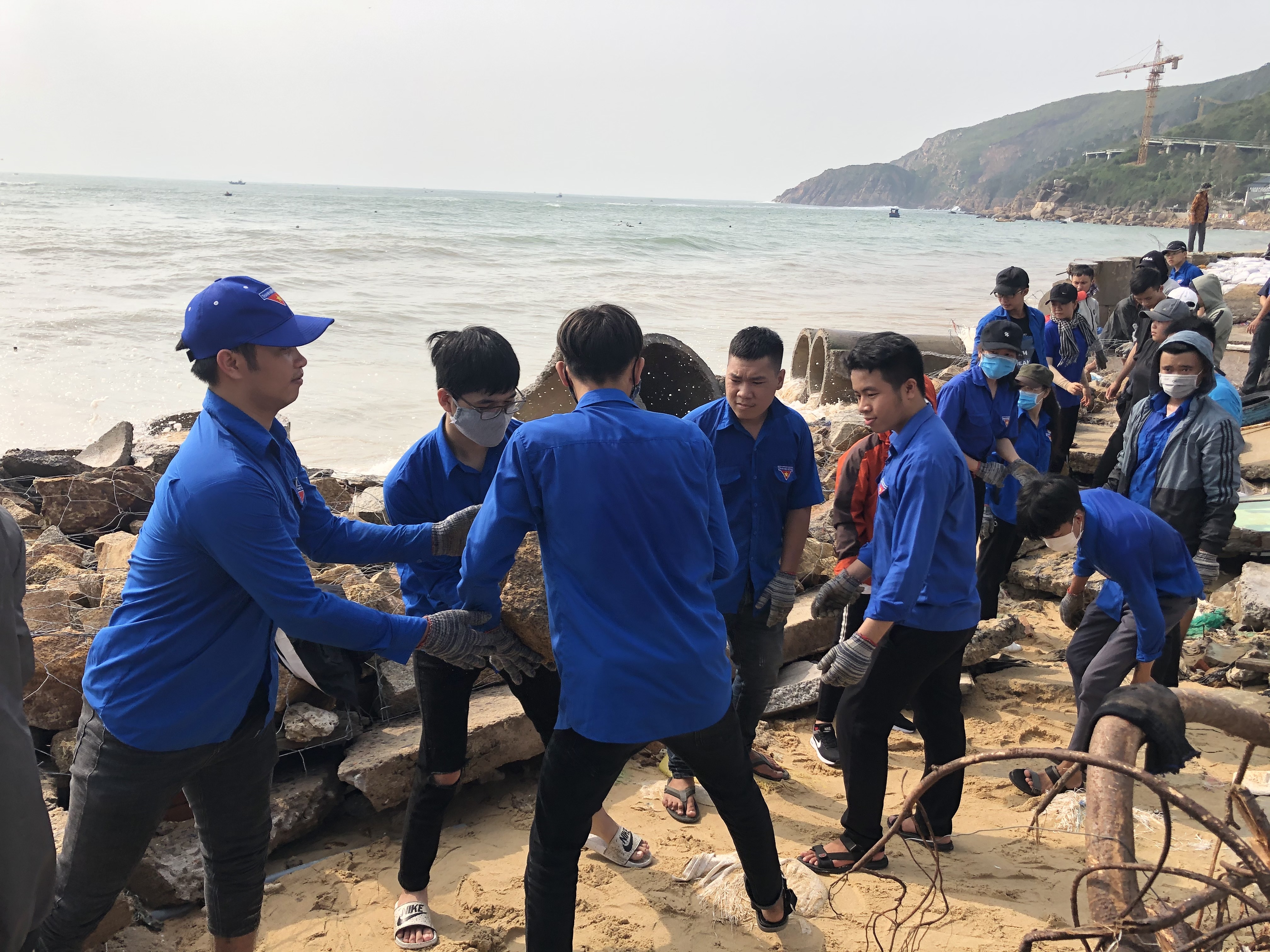 Sáng ngày 6/11/2019, tại xã Nhơn Hải, hơn 200 ĐVTN đã ra quân thu gom rác tại bãi biển và với sự giúp sức của lực lượng công an, bộ đội, ĐVTN đã cùng nhau bê đá "vá" 30m bờ kè bị sạt lở. Đây là một trong những hoạt động của tuổi trẻ tham gia khắc phục hậu quả bão lũ.