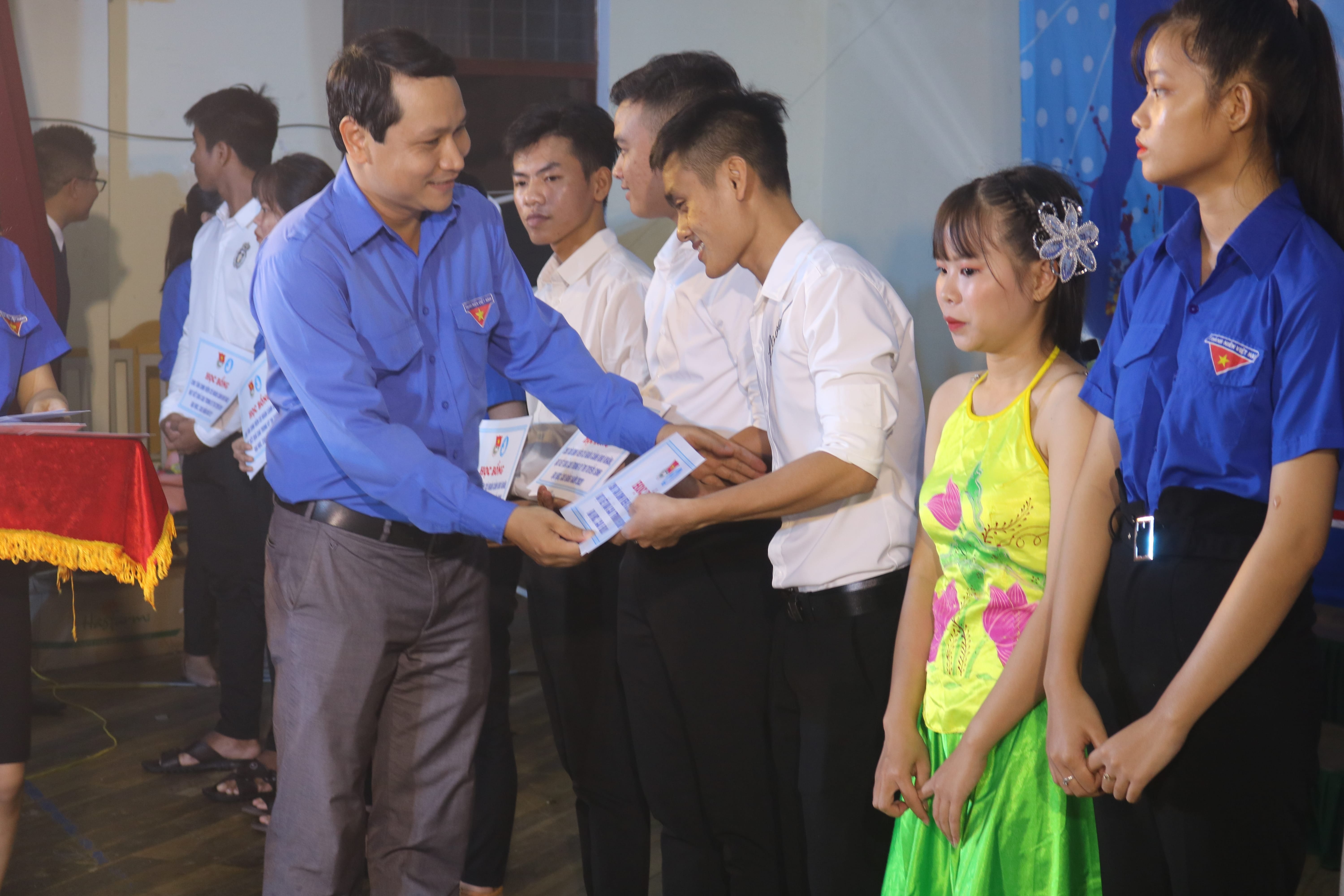Đồng chí Hà Duy Trung - Bí thư Tỉnh đoàn trao tặng học bổng cho các bạn tân sinh viên