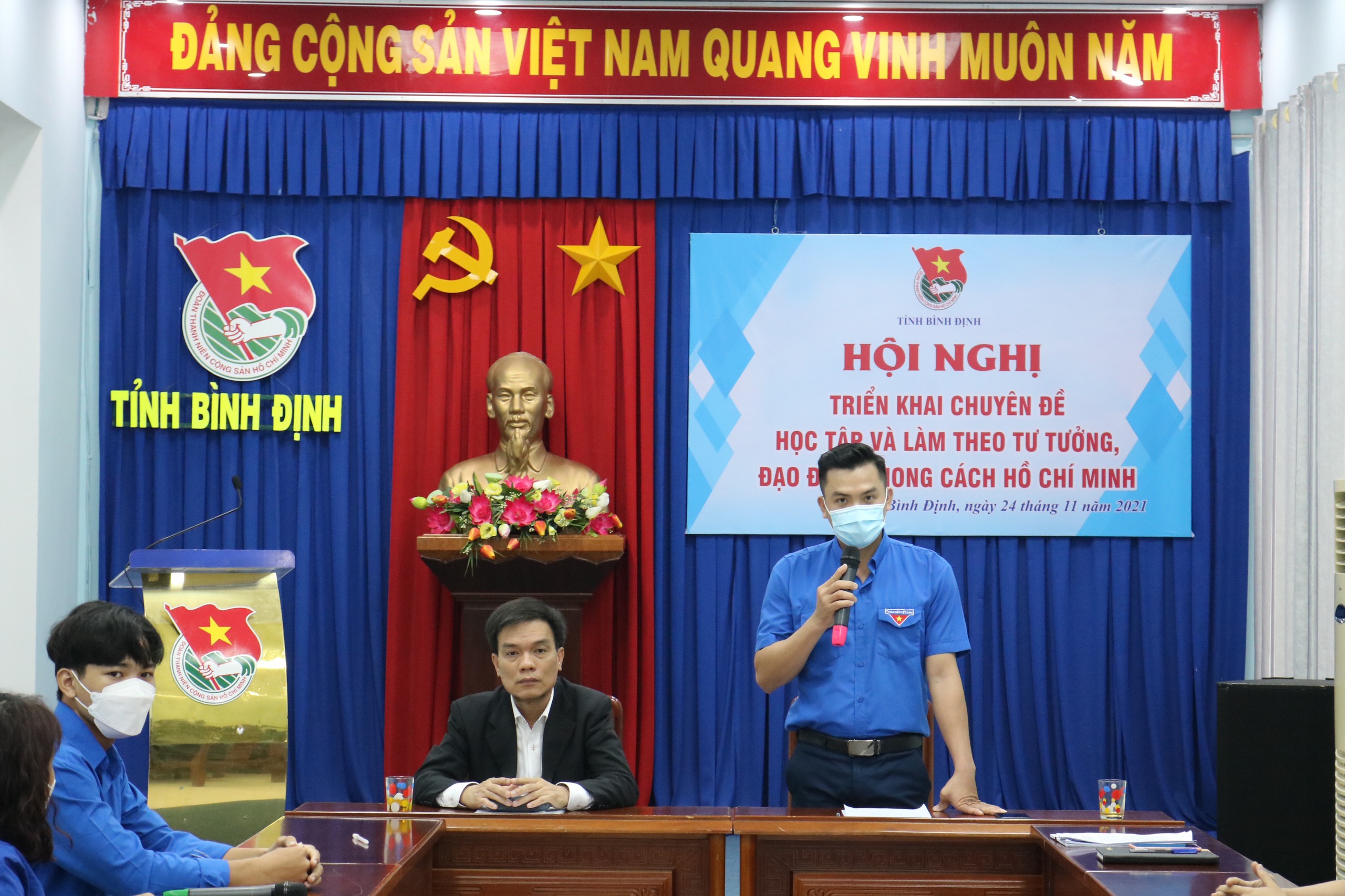 Tham dự Hội nghị có PGS.TS Hồ Xuân Quang - Trưởng phòng Đào tạo sau Đại học, trường Đại học Quy Nhơn; đồng chí Phạm Hồng Hiệp - Phó Bí thư Tỉnh đoàn, Chủ nhiệm Ủy ban Kiểm tra Tỉnh đoàn cùng các đồng chí trong Ban Thường vụ Tỉnh đoàn, Ban Chấp hành Tỉnh đoàn cùng các đồng chí Thường trực và cán bộ Đoàn, đoàn viên thanh niên các huyện, thị, thành đoàn và đoàn trực thuộc tại các điểm cầu.