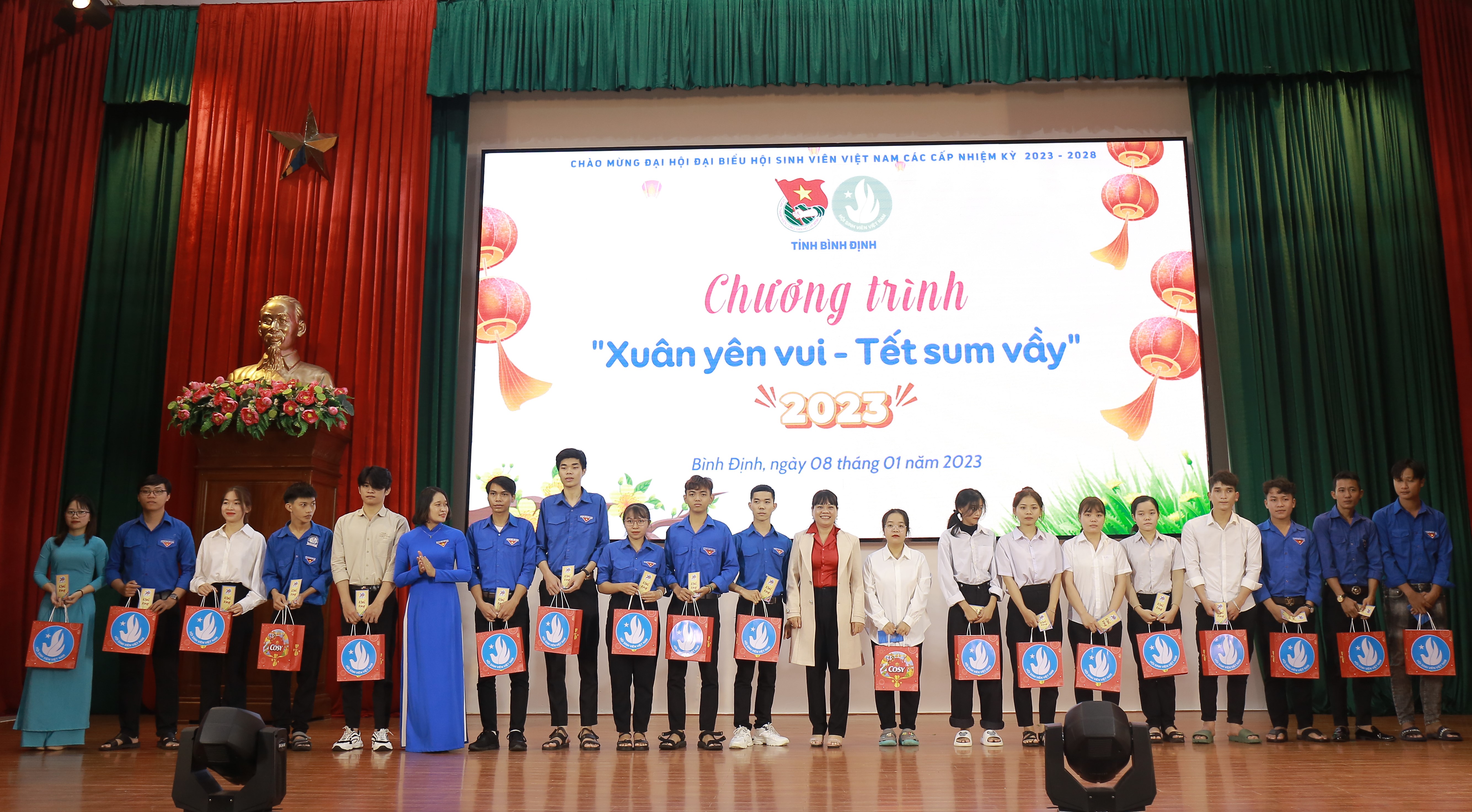 Nhân dịp Tết Nguyên đán Quý Mão năm 2023, Ban Thư ký Hội Sinh viên Việt Nam tỉnh trao tặng 60 suất quà Tết cho các bạn học sinh, sinh viên có hoàn cảnh khó khăn đạt thành tích cao trong học tập, góp phần giúp các bạn có một năm mới với nhiều niềm vui, nhiều sức khỏe, nhiều động lực và nhiều thành công hơn.