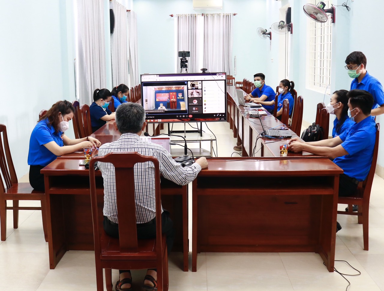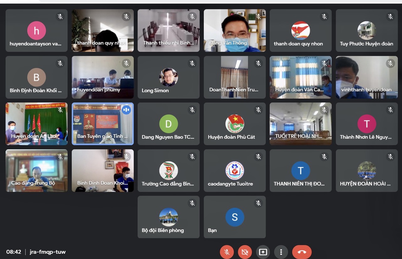 Thường trực các huyện, thị, thành đoàn và đoàn trực thuộc tham gia qua ứng dụng Google Meet