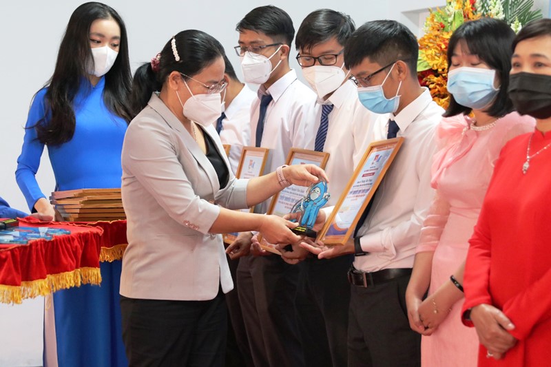 Dịp này, Ủy ban Hội Liên hiệp Thanh niên Việt Nam tỉnh đã trao khen thưởng cho 01 tập thể và 45 cá nhân đã có thành tích xuất sắc trong công tác phòng, chống dịch bệnh Covid-19; trao những phần quà thiết thực động viên cho con em thanh niên công nhân đang học tập tại trường Mầm non Ngôi sao nhỏ./,