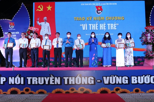Dịp này, Ban Thường vụ Tỉnh Đoàn đã trao tặng Kỷ niệm chương “Vì thế hệ trẻ” của Trung ương Đoàn TNCS Hồ Chí Minh cho 12 đồng chí; trao giải thưởng Lý Tự Trọng cho 02 đồng chí; trao giải thưởng “Thầy thuốc trẻ tiêu biểu toàn quốc năm 2021” cho 01 đồng chí; trao giải thưởng “Tài năng trẻ” tỉnh Bình Dương năm 2022 cho 05 đồng chí và trao giải thưởng “Cán bộ Đoàn xuất sắc tỉnh Bình Dương” năm 2022 cho 05 đồng chí.