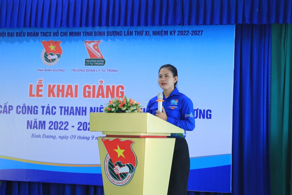 Tại Lễ khai giảng, đồng chí Trần Thị Diễm Trinh - Bí thư Tỉnh Đoàn cho rằng, trong thời gian qua, tổ chức Đoàn - Hội tỉnh Bình Dương đã có những bước phát triển vượt bậc trong công tác, được các cấp bộ Đoàn đánh giá cao và đạt được nhiều thành tích đáng trân trọng. Để có được những thành tích nổi bật như vậy là do công sức, sự đoàn kết, đồng lòng cố gắng chung của đội ngũ cán bộ Đoàn - Hội toàn tỉnh. Để tiếp nối truyền thống và giữ vững thành tích đã đạt được đòi hỏi phải có đội ngũ kế cận có trình độ, kiến thức và đạo đức cách mạng trong sáng. BTV Tỉnh Đoàn luôn đặt vị trí công tác cán bộ lên hàng đầu của mọi công việc. Do đó, đồng chí đề nghị các học viên phải phát huy tinh thần xung kích, tình nguyện của tuổi trẻ, cố gắng học tập tốt để góp sức lực của mình vào sự phát triển của tổ chức Đoàn nói riêng và cả hệ thống chính trị nói chung.